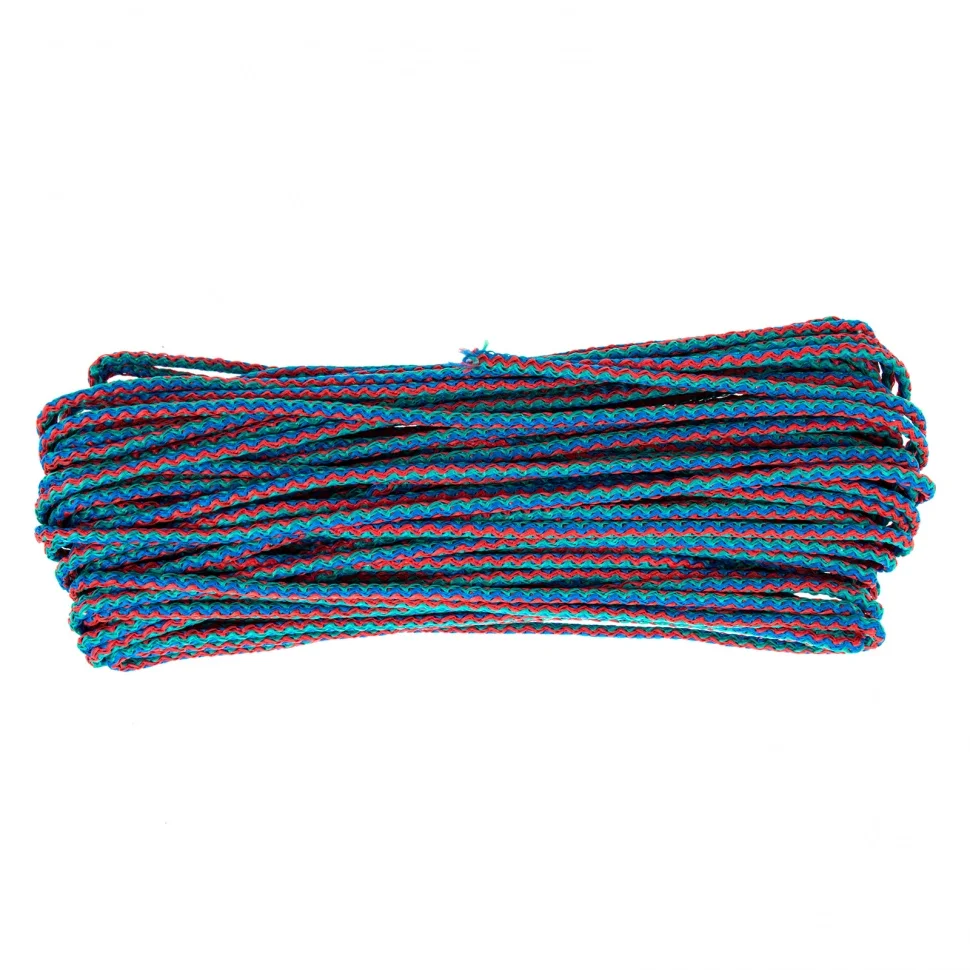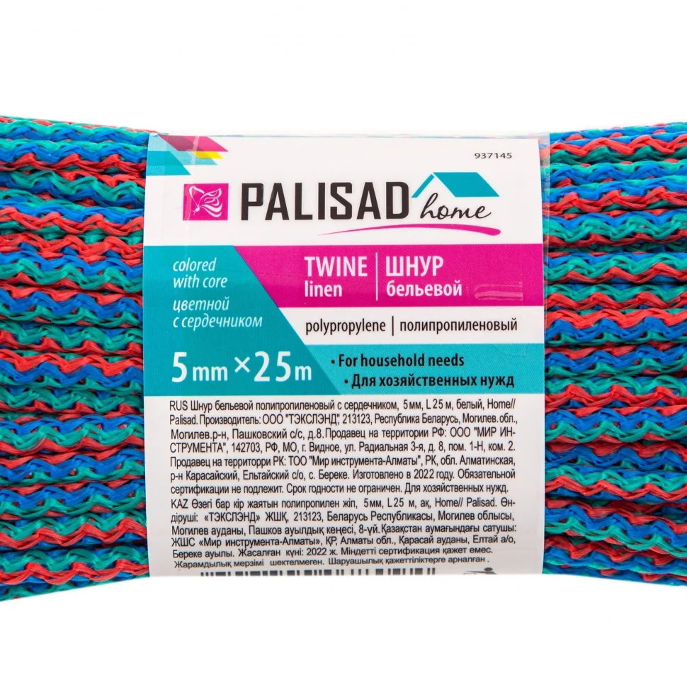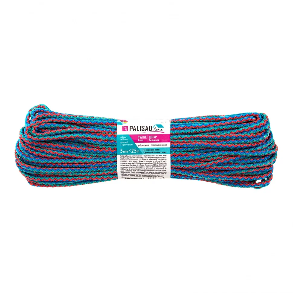 Цветной полипропиленовый бельевой шнур Palisad Home 937145 с сердечником, диаметром 5 мм и длиной 25 м, используется для сушки белья, а также в качестве хозяйственной веревки в быту, на рыбалке или в походе. От обычной бельевой веревки для сушки он отличается сердечником из полипропилена, увеличивающим стойкость к нагрузкам. Шнур с полипропиленовой оплеткой выдерживает разрывную нагрузку до 70 кгс, устойчив к растяжению и не провисает под весом мокрых вещей.ПреимуществаШнур изготовлен из полипропилена, не гниет и не разрушается под действием агрессивных сред, что увеличивает срок его службы.Изделие устойчиво к износу, выдерживает многократное изгибание, поэтому рассчитано на длительное использование.Веревка для белья из полипропилена с сердечником устойчива к температурным перепадам, поэтому ее можно использовать как в помещении, так и под открытым небом.Благодаря мягкости и эластичности бельевой трос легко завязывать узлом.