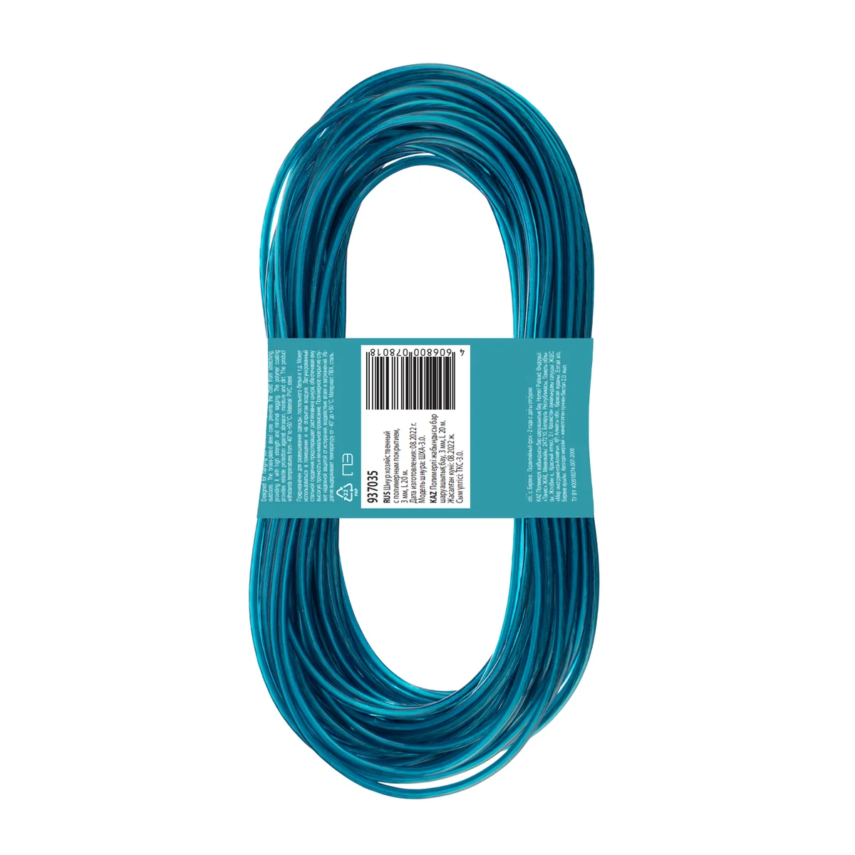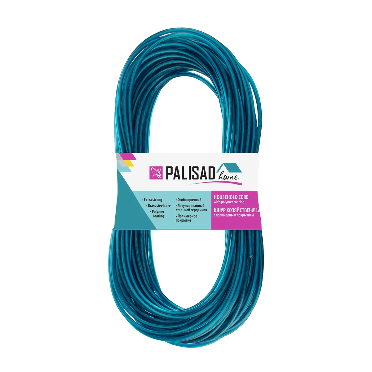 Хозяйственный шнур Palisad Home 937035 с полимерным покрытием, диаметром 3 мм и длиной 20 м, используется для сушки белья, связывания предметов и решения других задач. Будет полезен дома, на даче, в походе. В качестве сердечника использована стальная латунированная проволока, поэтому шнур не растягивается со временем.ПреимуществаЗащита от коррозии — благодаря полипропиленовому покрытию шнур не ржавеет и не пачкает одежду.Повышенная прочность — шнур рассчитан на разрывную нагрузку до 500 кгс и выдерживает даже тяжелые вещи (покрывала, верхнюю одежду и др.).Неприхотливость — изделие устойчиво к климатическим воздействиям и загрязнениям, поэтому может использоваться как в помещении, так и на улице.Высокий ресурс — хозяйственный шнур не поглощает влагу и не гниет, поэтому прослужит долго.