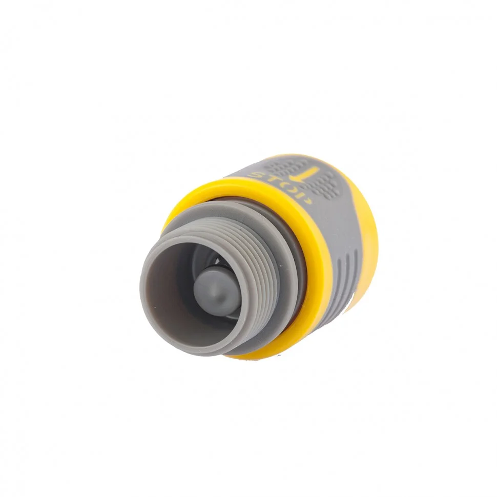 Быстросъемный соединитель Palisad LUXE 66233 с клапаном «аквастоп» и наружной резьбой 3/4"" предназначен для подключения шланга к напорной магистрали. Пригодится садоводам для организации полноценной поливочной системы и орошения участка.ПреимуществаНадежность и долговечность — коннектор выполнен из ABS-пластика и термопластичной резины.Быстрое переключение между водоразборными линиями — при отключении шланга подача воды прекращается автоматически.Простая подготовка к работе — коннектор с быстросъемным соединением подключается без дополнительного инструмента.Удобная упаковка — соединитель поставляется с подвесной картой для размещения на стенде.