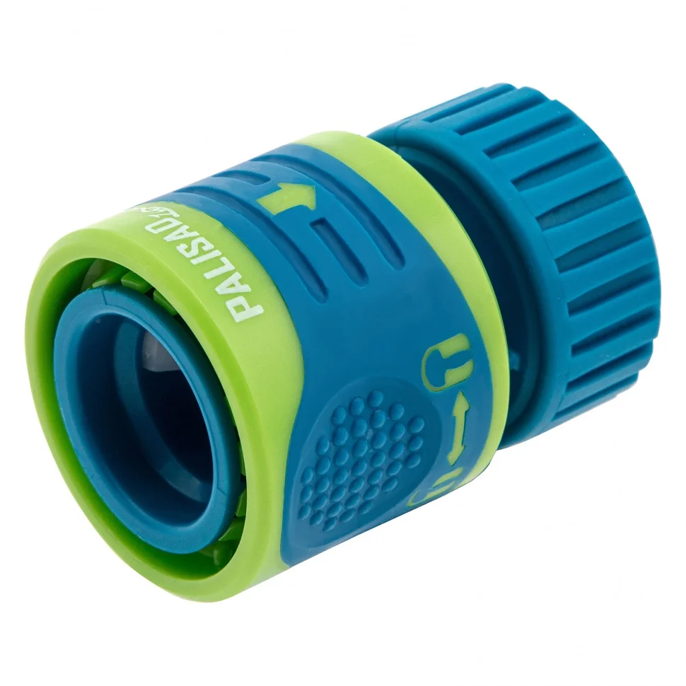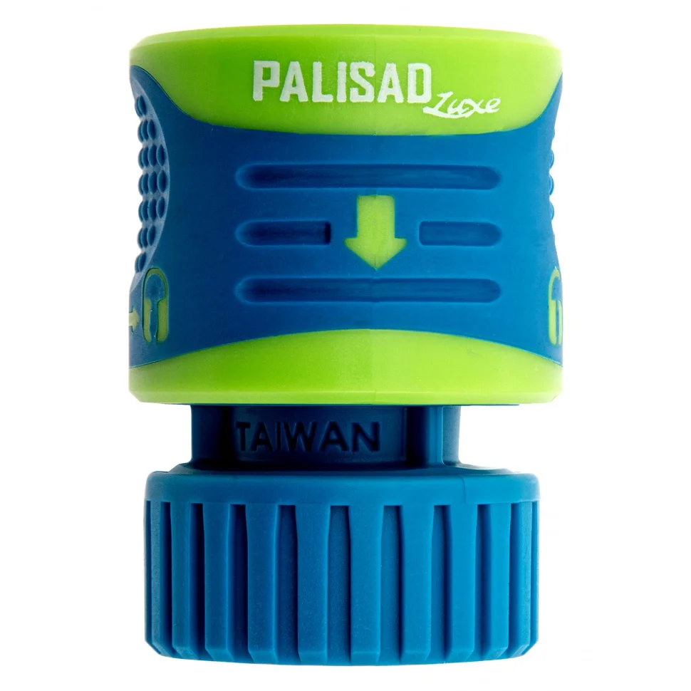 Быстросъемный соединитель Palisad LUXE 66234 с внутренней резьбой 3/4"" применяется для присоединения шланга к напорной магистрали. Позволяет организовать бесперебойную подачу воды для полива садового или огородного участка.ПреимуществаВысокий показатель прочности — двухкомпонентный корпус изготовлен из ABS-пластика и термопластичной резины.Легкая установка — быстросъемный соединитель позволяет подключать шланг одним движением и без дополнительного инструмента.Продуманная упаковка — изделие поставляется с подвесной картой, удобной для размещения на стенде.