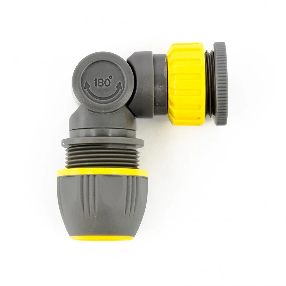 Соединитель Palisad LUXE 66251 с внутренней резьбой 1/2-3/4"", с шарниром, позволяет подключать шланги напрямую к отводу. Благодаря ему можно создать полноценную систему полива, поэтому он пригодится владельцам садовых и огородных участков.ПреимуществаНадежность — соединитель из ABS-пластика обладает необходимыми прочностными характеристиками.Быстроразъемные соединения — монтаж/демонтаж коннектора не занимает много времени.Функциональность — шарнирный механизм вращается на 180°, что позволяет менять направление полива без риска повреждения шланга.Удобное размещение на стенде — соединитель поставляется с подвесной картой.