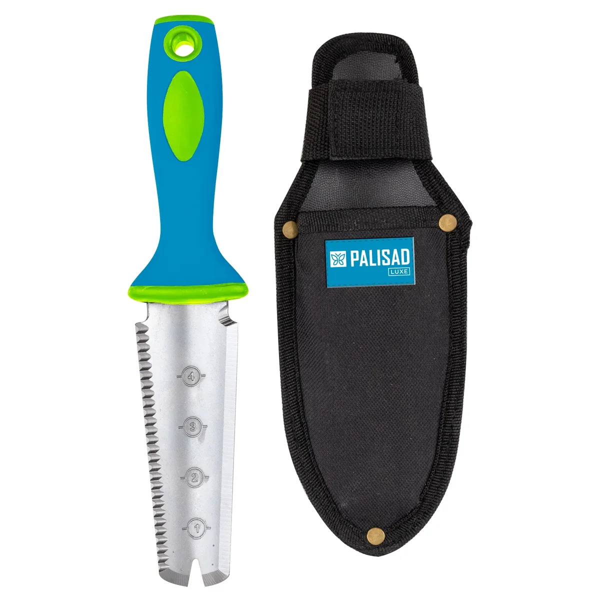 Посадочный совок Palisad LUXE 62070 размером 60 x 285 мм поставляется с чехлом и представляет собой многофункциональный инструмент 5 в 1. Позволяет решать различные задачи во время работы в саду и огороде: высаживать и пересаживать растения, обрезать корни, шпагаты и ленты, удалять сорняки. Компактный инструмент с полотном размером 50 x 125 мм удобен для работы на небольших грядках и клумбах.