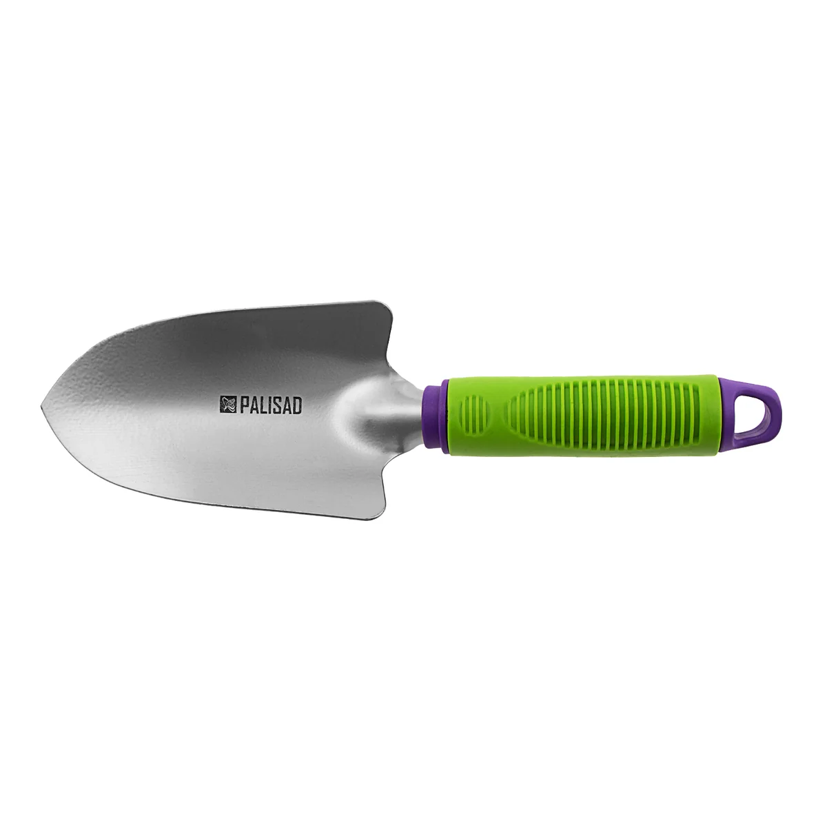 Широкий посадочный совок Palisad размером 85 х 300 мм, стальной, с пластиковой рукояткой, облегчает садовые работы на участке: пересадку рассады и посадку растений. Полотно шириной 85 мм обеспечивает удобную работу на клумбах и грядках.
