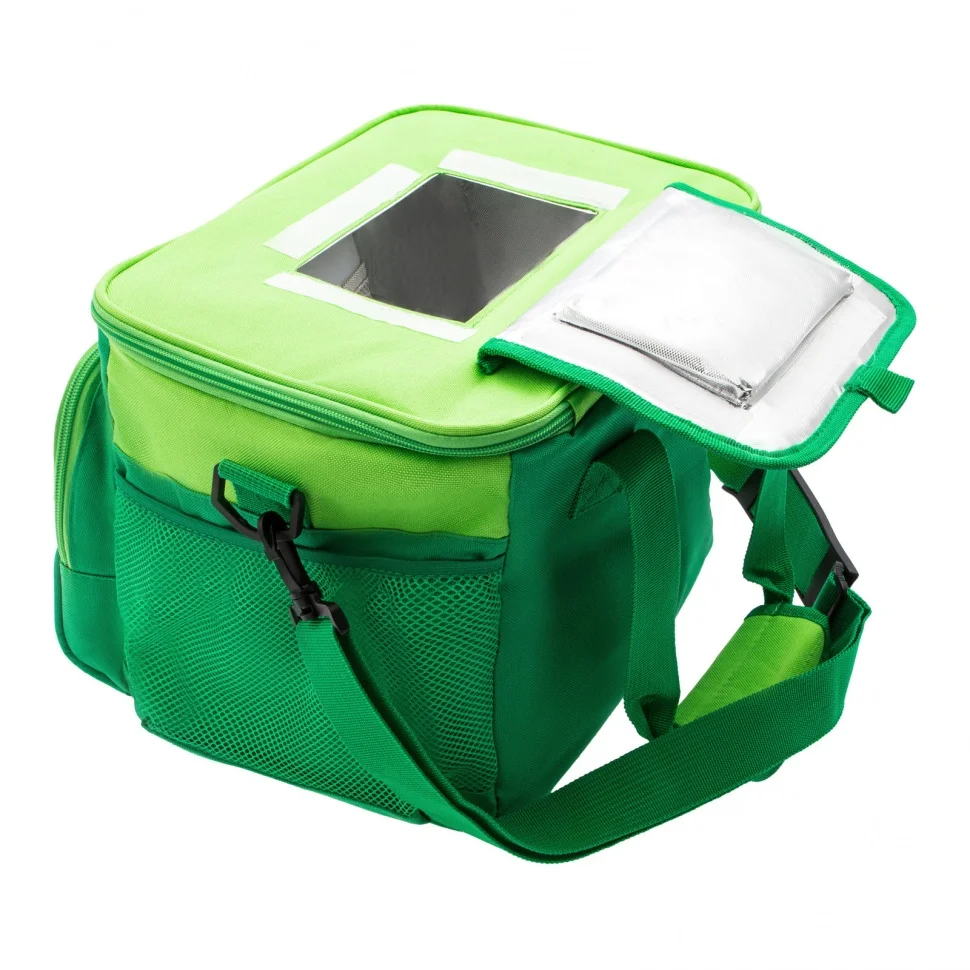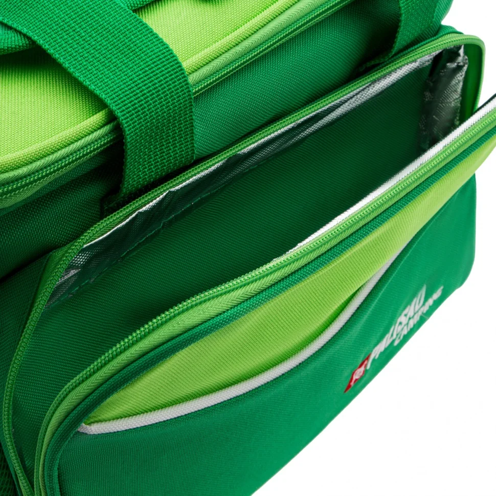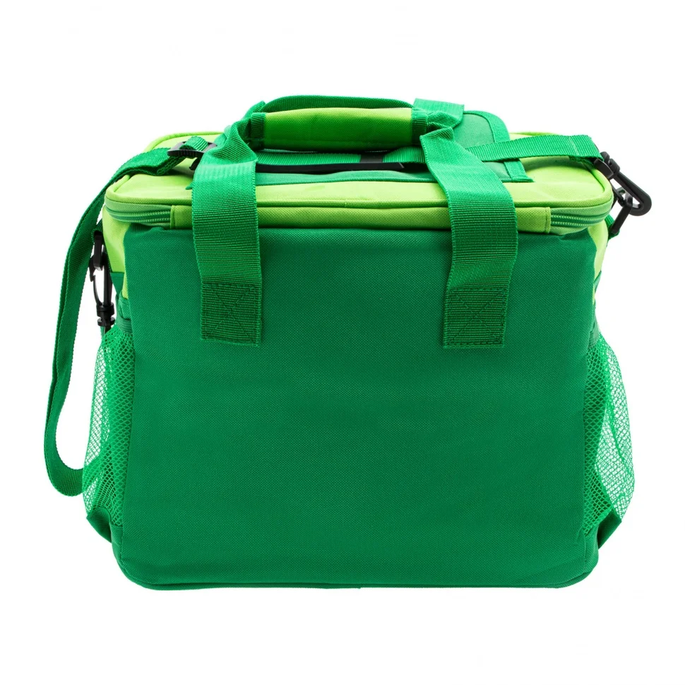 Сумка-холодильник Palisad Camping 69597 габаритами 32 х 25 х 24 см комплектуется двумя охлаждающими блоками и способна в течение нескольких часов сохранять продукты и напитки прохладными, поэтому будет полезна в поездке или на пикнике. Для максимального охлаждения следует перед использованием минимум 6 часов выдержать блоки в морозильной камере. Внутри сумки-холодильника имеются сетчатые кармашки для аккумуляторов холода. Сумку без охлаждающих блоков можно использовать для поддержания температуры горячих блюд и напитков. Регулируемый ремень позволяет носить сумку на плече.ПреимуществаНаружная поверхность из полиэстера плотностью 600D устойчива к износу, что обеспечивает изделию долговечность.Теплоизоляционный слой из алюминиевой фольги и EPE эффективно сохраняет температуру внутри основного отделения.Верхний люк позволяет получить доступ к содержимому, минимизируя потери холода (или тепла).Внутрь вместительного бокового кармана можно положить столовые приборы.