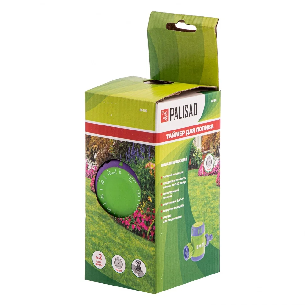 Механический таймер Palisad 66190 используется для автоматического отключения полива в промежутке от 10 минут до 2 часов. Он пригодится дачникам для организации ухода за растениями на участке без необходимости постоянного контроля полива. Также он позволяет рассчитывать расход воды для ее экономии.ПреимуществаТаймер не подвержен воздействию воды и внешним негативным факторам благодаря качественному ABS-пластику.В конструкции предусмотрен фильтр, который предотвращает засорение таймера.Механическое устройство не зависит от наличия электричества и не требует использования батареек, что делает его универсальным.Быстросъемный соединитель позволяет легко подключать и отключать таймер от системы полива.