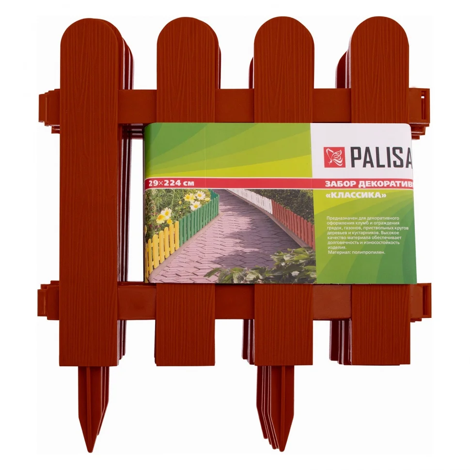 Декоративный забор Palisad «Классика» 65009 терракотового цвета, 29 х 224 см, состоит из 7 секций и позволяет выделить отдельные участки придомовой или дачной территории. Он предназначен для декоративного оформления цветников, ограждения дорожек, грядок и газонов.ПреимуществаЗабор изготовлен из полипропилена, поэтому он прочный, не выгорает на солнце и не разрушается под действием влаги и температурных перепадов.Надежные соединения секций позволяют оградить участок любой конфигурации.Простая установка — забор фиксируется в грунте при помощи заостренных ножек.