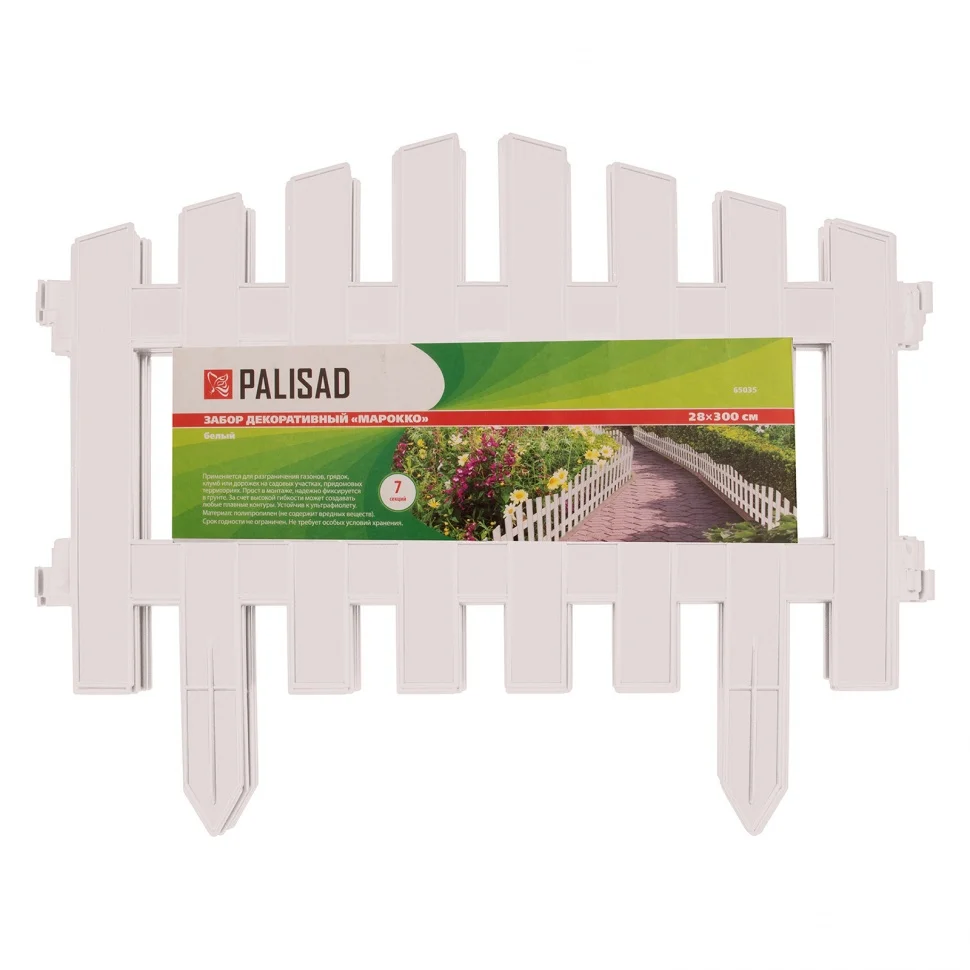 Декоративный забор Palisad «Марокко» 65035 белого цвета, 28 х 300 см, позволяет обозначить границы зеленых насаждений и грядок, оградить дорожки и зоны отдыха. В комплекте 7 секций общей длиной 300 см, которые помогут придать аккуратный и завершенный вид придомовой территории или дачному участку.ПреимуществаЗабор устойчив к воздействию ультрафиолета и осадков, т.к. изготовлен из прочного полипропилена.На протяжении всего срока использования и независимо от времени года геометрические пропорции секций сохраняются.Заостренные ножки легко фиксируются в грунте без применения инструментов.Можно оформить участок любой формы, поскольку секции имеют подвижное соединение.