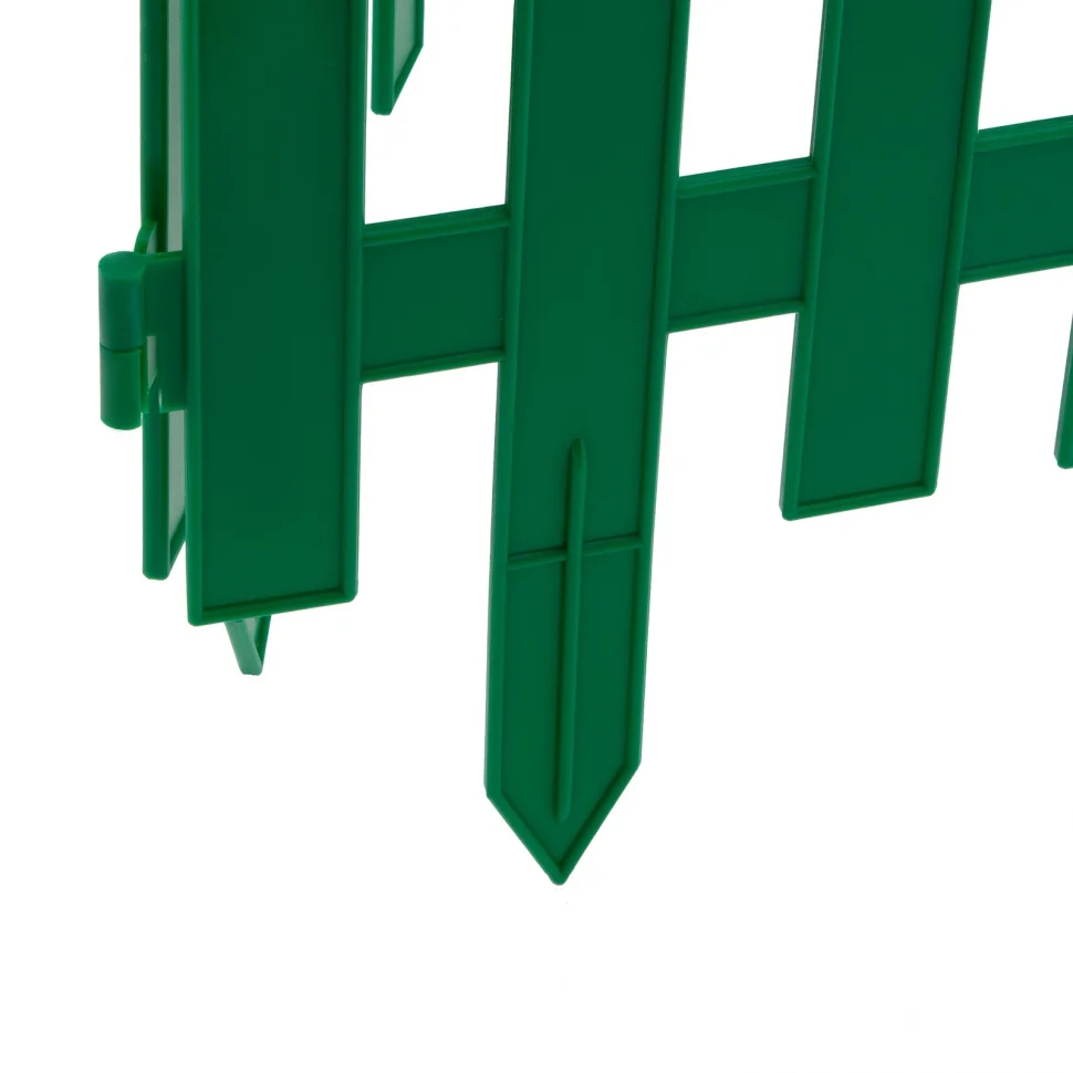 Зеленый декоративный забор Palisad «Рейка» 65005, 28 х 300 см, позволяет подчеркнуть отдельные зоны озелененной территории. В комплекте 7 оригинальных секций, которые позволяют оформить цветники и грядки, обозначить границы дорожек, оградить деревья и кусты. С заборчиком ландшафт принимает завершенный вид.ПреимуществаУстановка очень проста за счет заостренных ножек, которые фиксируются в грунте.Забор устойчив к воздействию снега, дождя и солнечных лучей, т.к. изготовлен из высококачественного полипропилена.Возможность огораживать фигурные участки - соединение секций забора подвижно.Первоначальный вид - независимо от срока использования и погодных условий забор сохраняет геометрическую форму.Экологическая безопасность - материал забора безвреден для почвы и для человека.