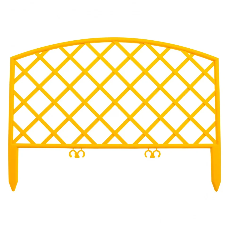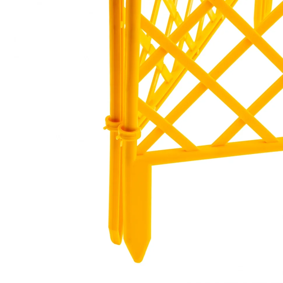 Забор декоративный Palisad «Сетка» 65001 желтого цвета, 24 х 320 см, состоит из 7 секций и позволяет зонировать озелененный участок. С его помощью можно украсить дачную территорию - обозначить границы грядки или зоны отдыха, оформить клумбу, оградить кустарник или дерево.ПреимуществаУстановка не требует усилий - заостренные ножки за несколько секунд фиксируются в грунте.Забор не разрушится под воздействием солнечных лучей или дождя, т.к. изготовлен из прочного полипропилена.Благодаря подвижному замковому соединению можно оформить участок любой формы.