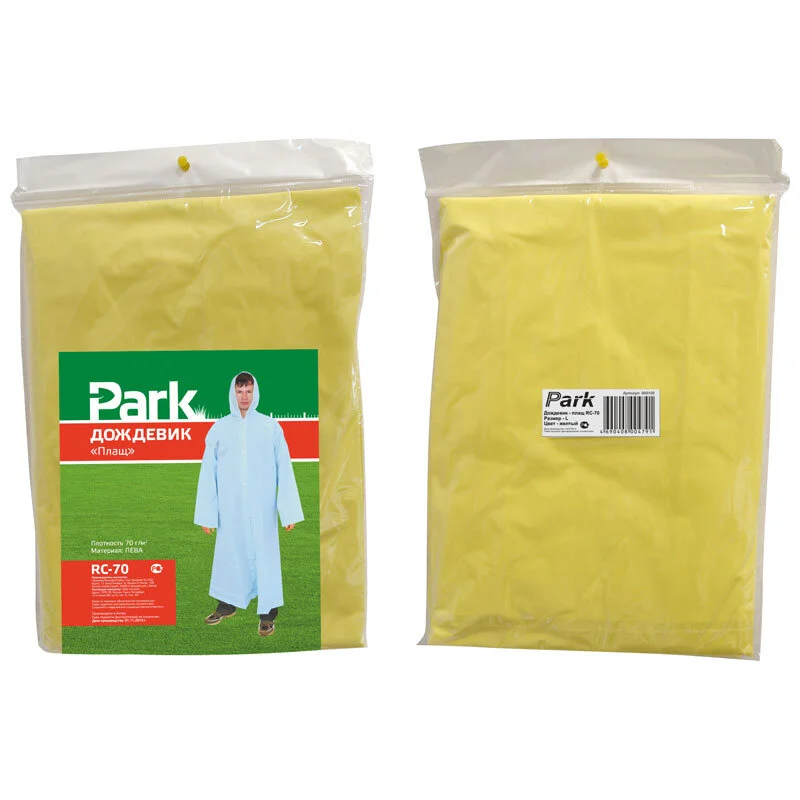 Дождевик «Плащ» RC-70 плотность 70 гр. На кнопках Материал: ПЕВА Упаковка: ПЭ пакет (подвесной) с вкладышем Тощина 0,17мм (170мкм)