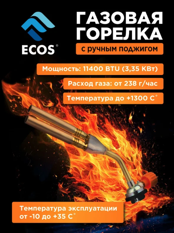 Горелка газовая (лампа паяльная) портативная ECOS GT-2108 (цанговое соединение) 157863-SK