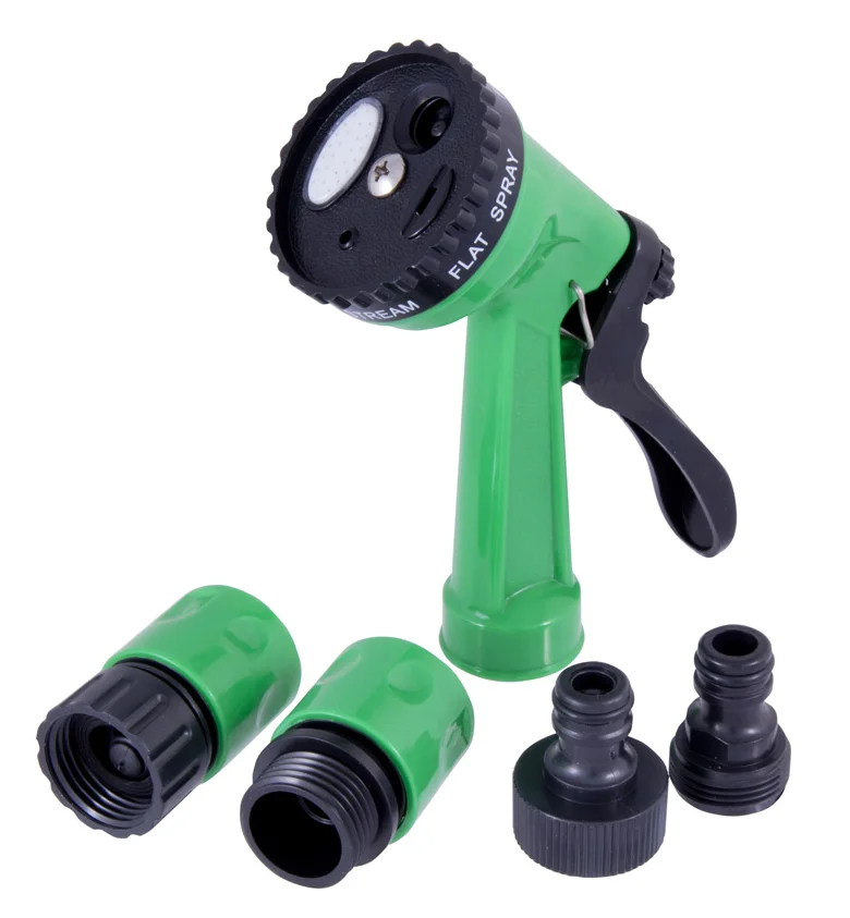 Набор для полива 3/4" HL062 (5 предметов, под резьбу ) Пистолет для полива (4 режима) HL015 - адаптер 3/4" с внешней резьбой HL012 - адаптер 3/4" с внутренней резьбой HL034 - соединитель 3/4" с внешней резьбой (разъем-папа) HL033 - соединитель 3/4" с аквастопом (внутренняя резьба) (разъем-мама) диаметр штуцера 16 мм материал: ABS пластик (АБС), полипропилен, термпопластичная резина, металл, резина давление на входе: минимум 2 Бар-максимум 6 Бар упаковка: блитер площадь полива: 1- 6м соответственно давлению на входе