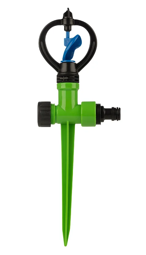 вращающийся разбрызгиватель 1/2-3/4 Высота: 28 см Площадь полива до 6 кв.м Диаметр штуцера 16 мм Коннектор 3/4" Материал: пластмасса Цвет: зеленый вес 55 гр