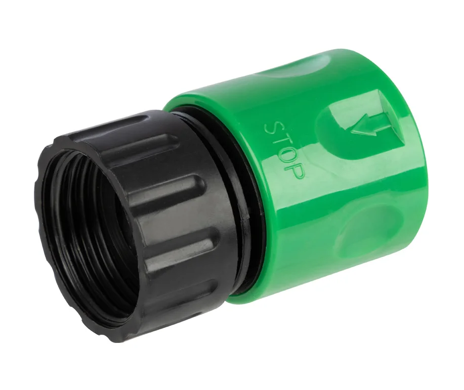 Соединитель 3/4" HL033 с аквастопом (внутренняя резьба) для шланга 3/4" диаметр штуцера 16 мм материал: полипропилен упаковка: блистер применение: для поливочных устройств с универсальной системой быстрой фиксации