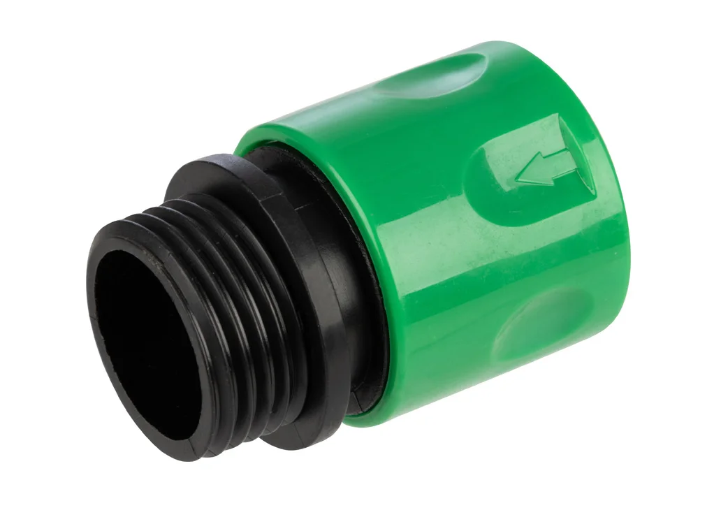 Соединитель 3/4" HL034 с внешней резьбой для шланга 3/4" диаметр штуцера 16 мм материал: полипропилен, упаковка: блистер применение: для поливочных устройств с универсальной системой быстрой фиксации