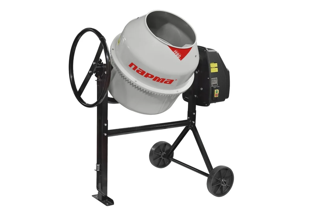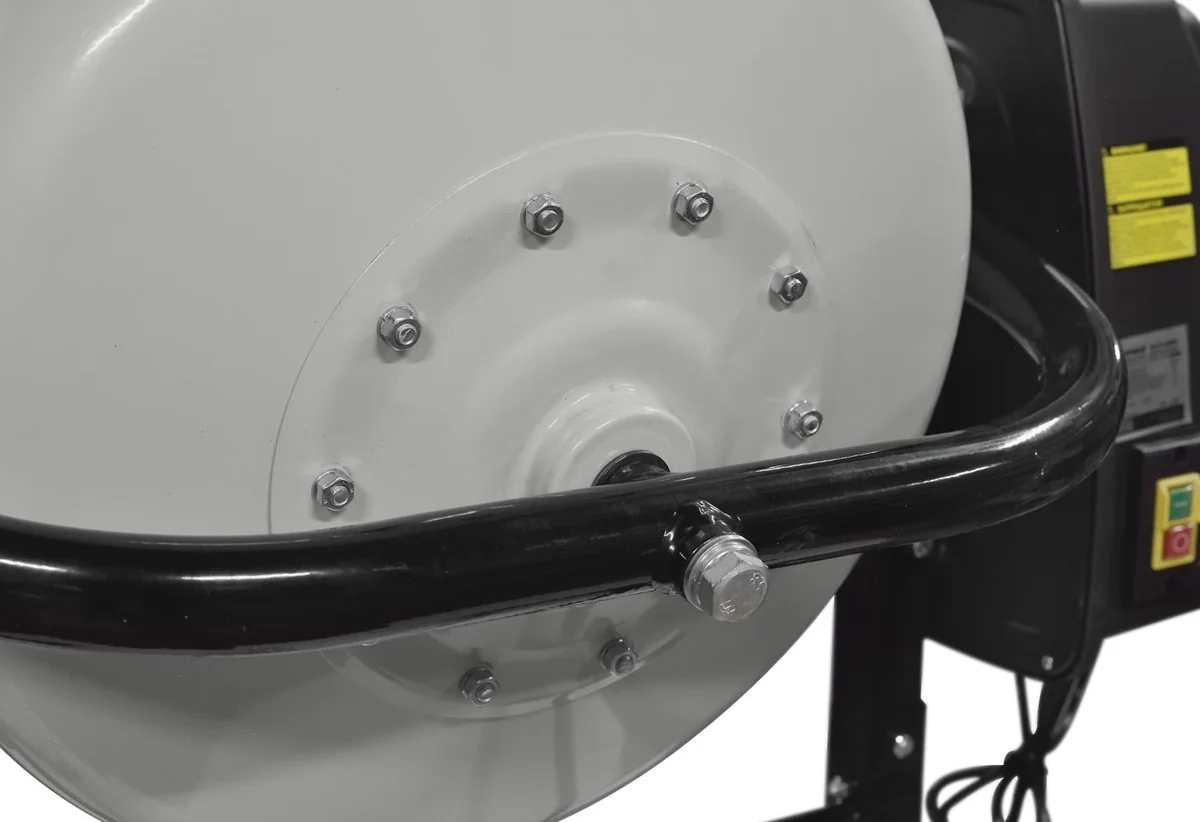 - Ножной механизм фиксации положения барабана, который позволяет удерживать маховик для выгрузки смеси двумя руками.