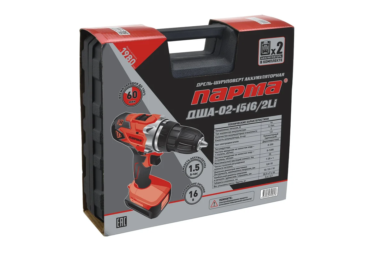 Дрель-шуруповерт аккумуляторная Парма ДША-02-1516/2Li