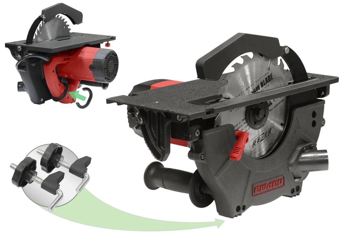 - Регулировка глубины и угла пропила