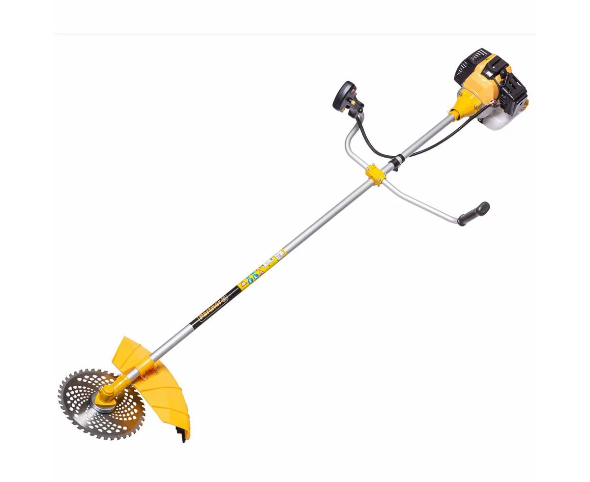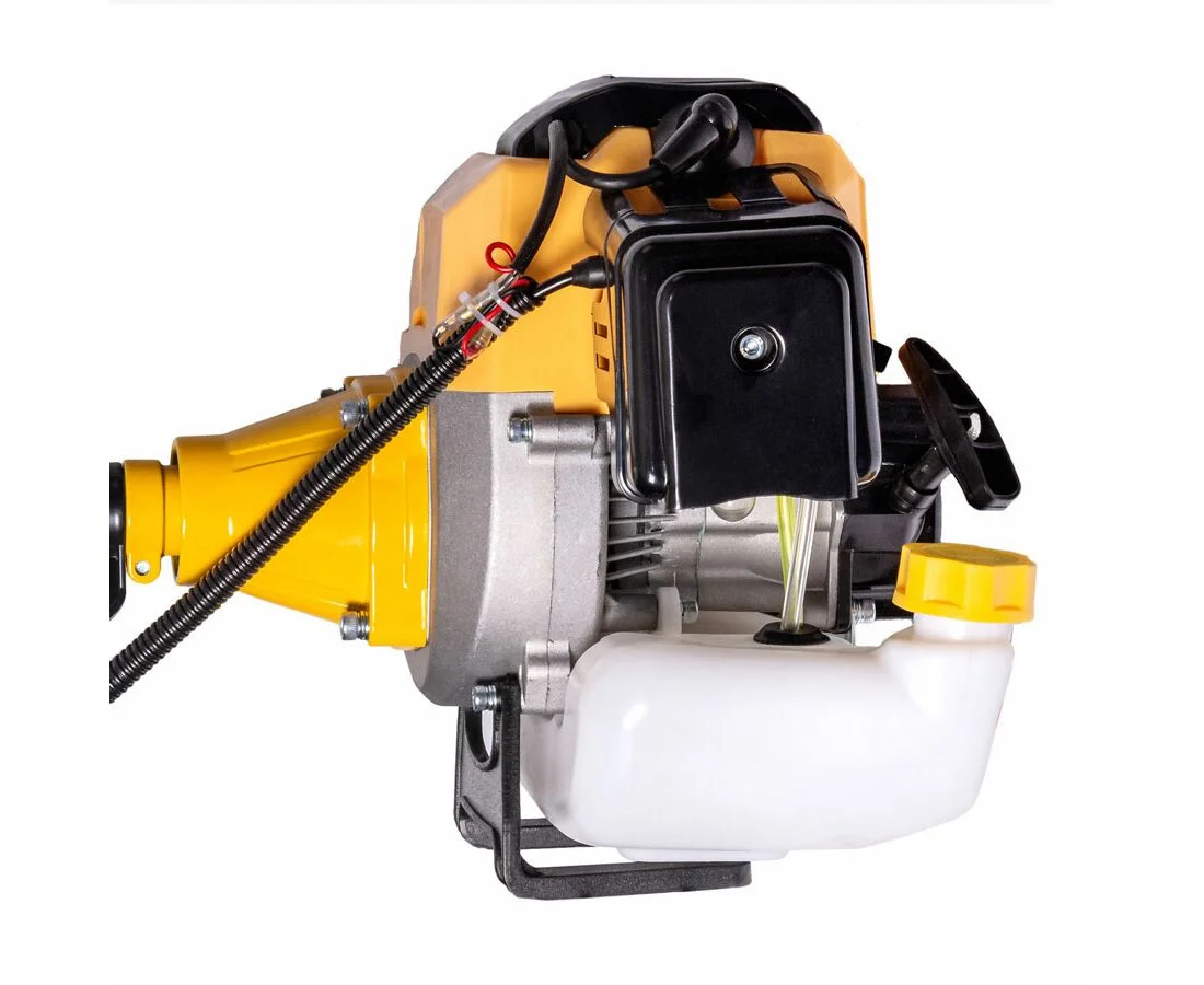 Данная модель может похвастаться своей высокой мощностью, которая достигается за счёт двухтактного двигателя с объемом цилиндра 52 кубических сантиметра. Производитель в данной модели продумал систему запуска, при которой происходит плавное зажигание, а следовательно, и меньший расход топлива. Для возможности запустить бензокосу в любое время она оборудована специальным насосом для подкачки топлива.