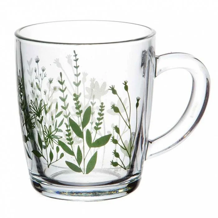 - Кружка из прозрачного стекла с одноцветным рисунком