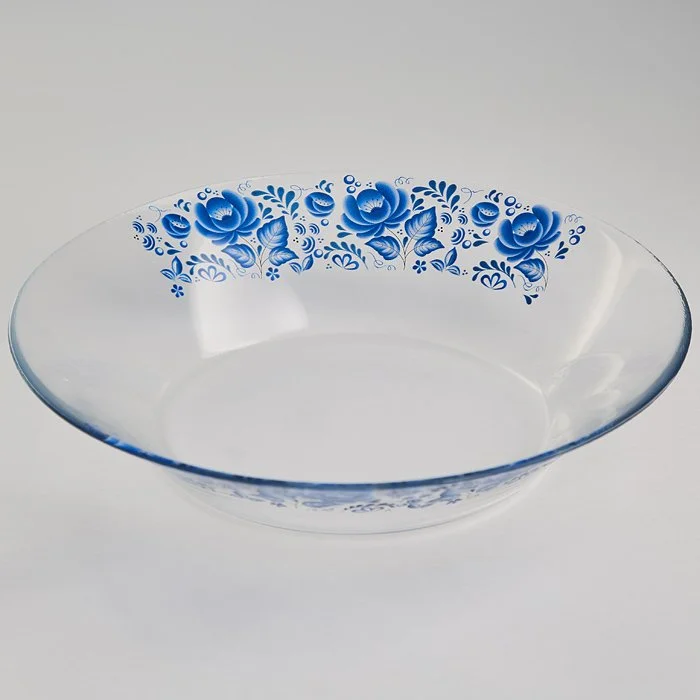 - Тарелка глубокая из высококачественного стекла с деколью
