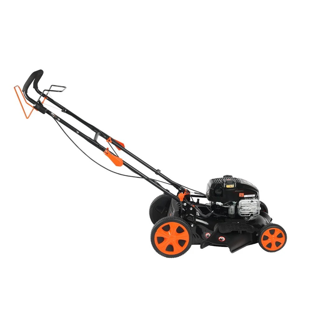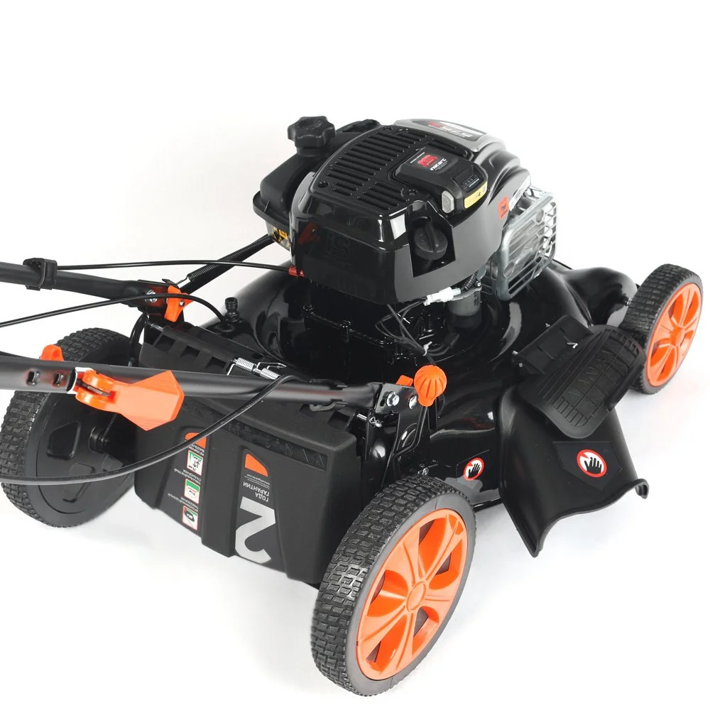 Отличительной особенностью газонокосилки является наличие электростарта - возможность запуска от Li-Ion аккумулятора, идущего в комплекте. Возможна работа в трех режимах: сбор травы в травосборник, боковой выброс травы, режим мульчирования. Большие задние колеса придают косилке лучшую устойчивость и стабильность высоты кошения. Газонокосилку отличает легкий запуск, высокая производительность и простота в обслуживании. Складная рукоятка, съёмный травосборник и компактный размер позволяют легко транспортировать и хранить газонокосилку. Для облегчения работы газонокосилка оснащена приводом на колеса. Корпус косилки оснащен штуцером для подключения шланга - для быстрой очистки внутренней