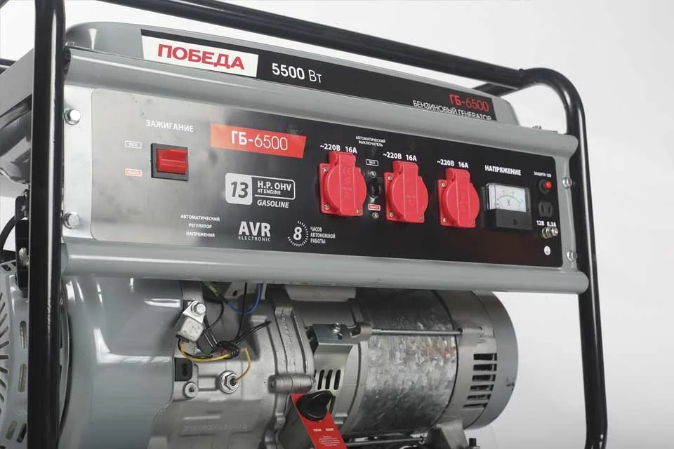 - бензогенератор Patriot Победа ГБ-6500 – незаменимый помощник для резервного электроснабжения загородного дома или дачного участка. Автоматическая система стабилизации выходного напряжения AVR предотвращает воздействие скачков напряжения на бытовую технику и электроинструменты.