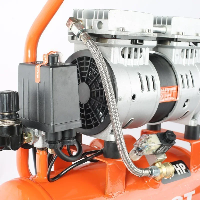 Безмасляный поршневой компрессор применяется для обеспечения сжатым чистым воздухом пневмоинструмента.
