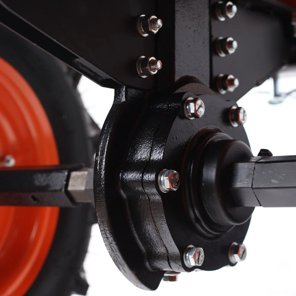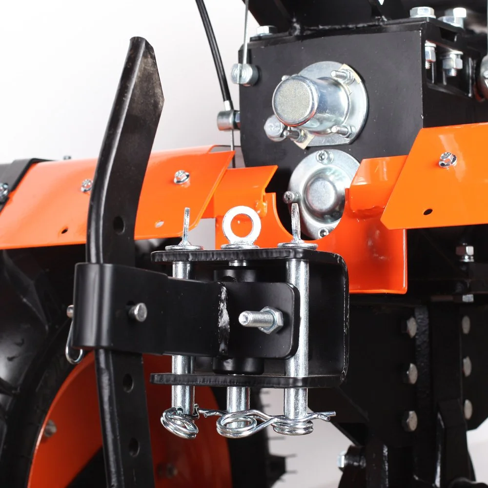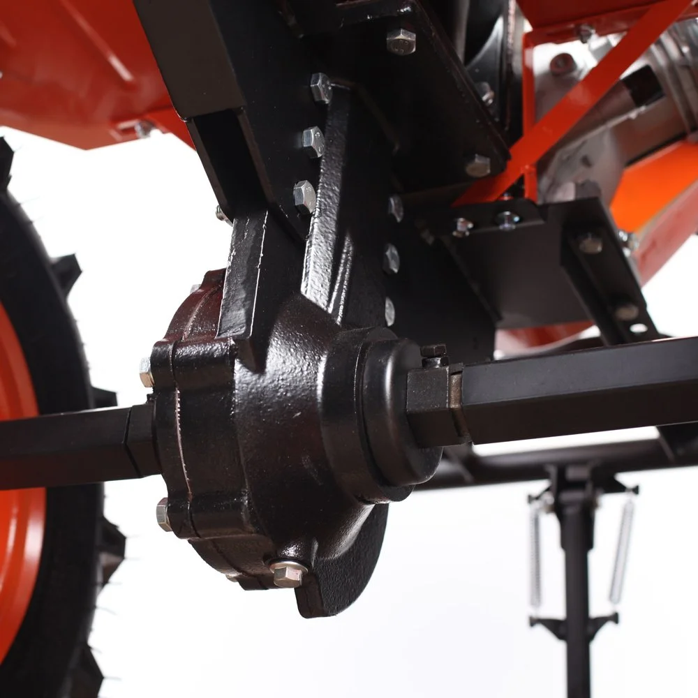 Мощный мотокультиватор с многодисковым сцеплением в масляной ванне и шестеренчатым редуктором с рекордной шириной культивирования, укомплектован фрезами и большими пневматическими колесами, что позволяет использовать мотокультиватор для культивирования, сразу "из коробки". Ножи на фрезах имеют усиленную конструкцию. Универсальный узел сцепки - самый распространённый и дает возможность устанавливать разнообразное навесное оборудование: плуги и окучники различной конфигурации. Тележка для мотокультиваторов подходит практически любая, а если и понадобится переделка, то она будет минимальна и ее можно произвести без обращения в сервисный центр. Отдельно можете приобрести и установить роторную косилку, помпу, тележку, плуг, окучник, картофелевыкапыватель.