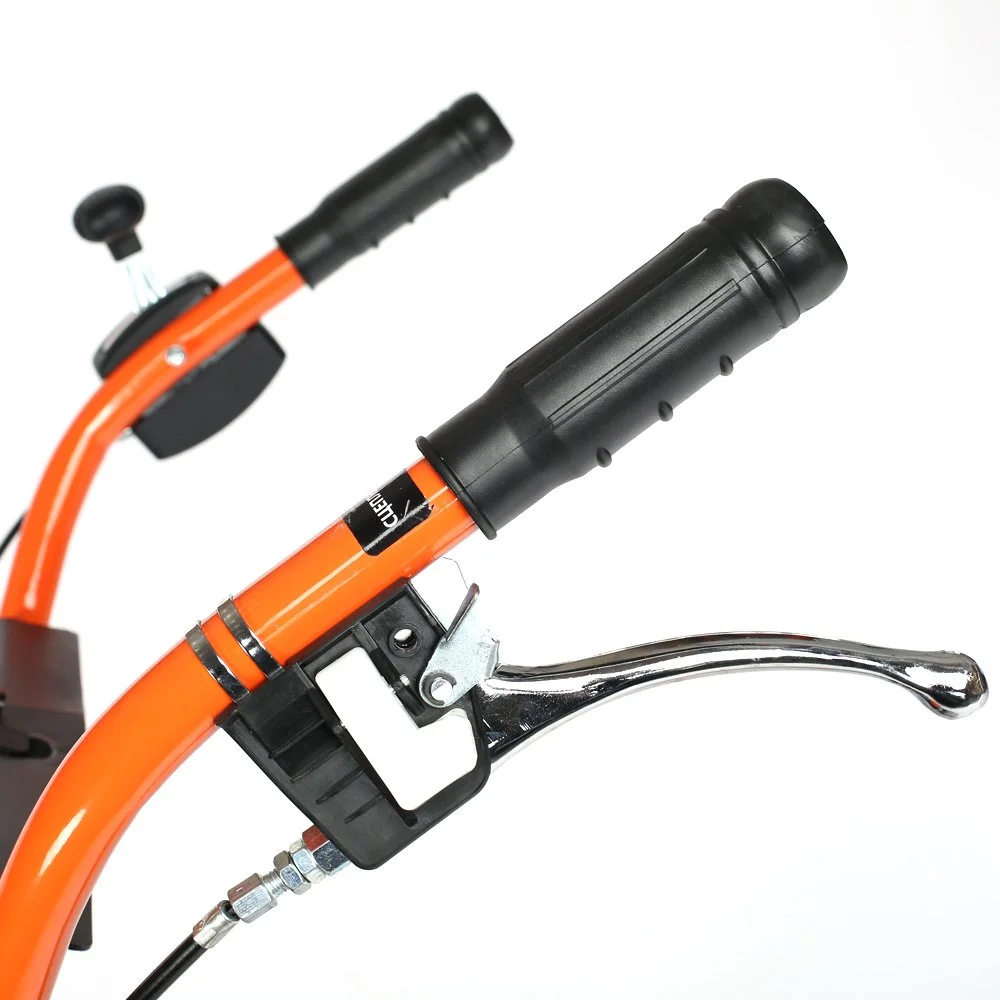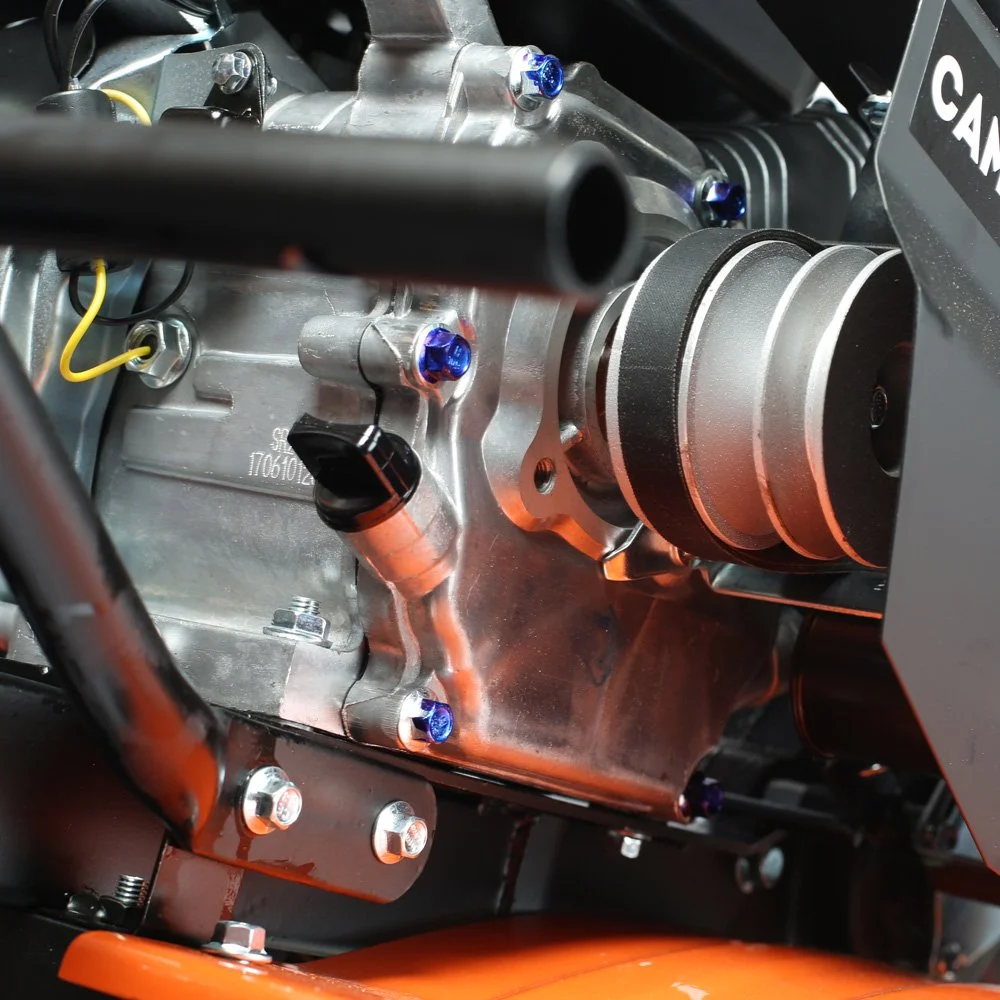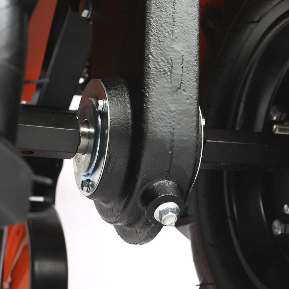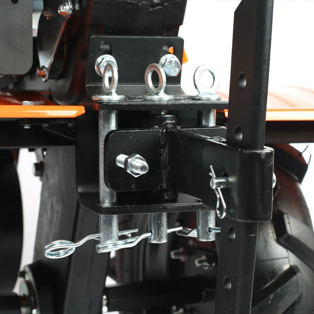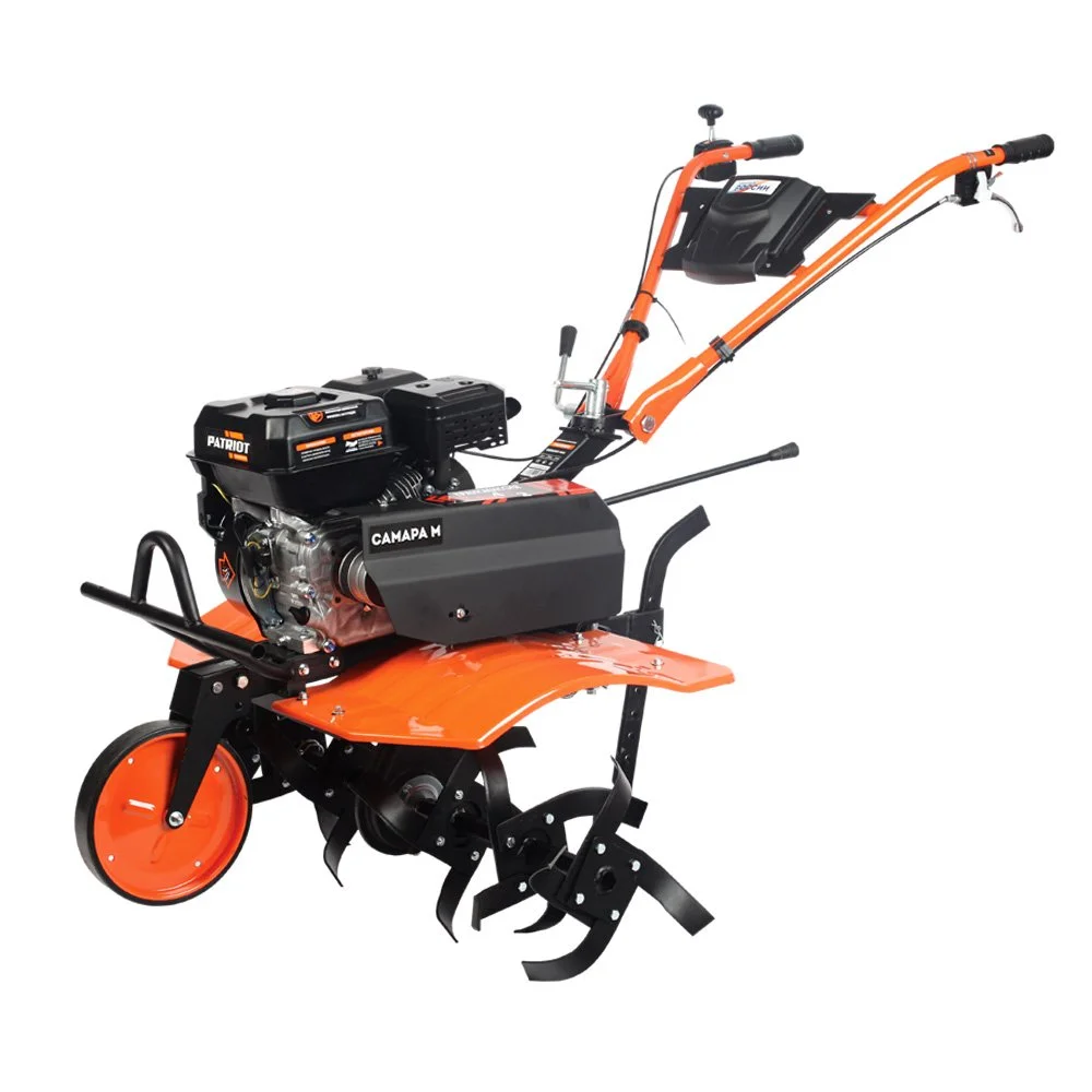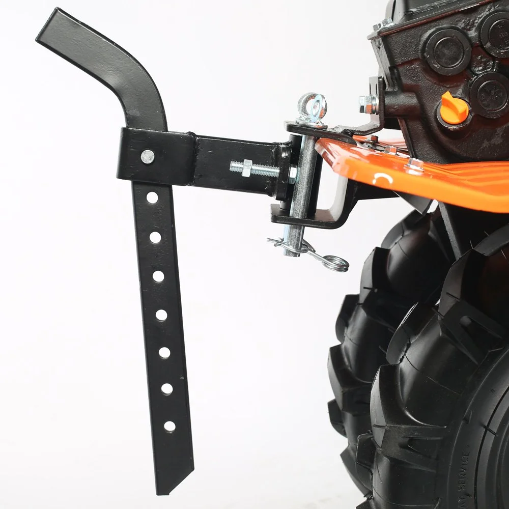 Это мощный, многофункциональный мотоблок с двигателем 7 л.с повышенного ресурса и чугунным редуктором. Укомплектован фрезами и пневматическими колесами. Установлена ручка с возможностью регулировки и поворота в разных плоскостях. Переключение скоростей осуществляется через коробку передач, а включение пониженной или повышенной передачи можно производить перекидыванием ремня с одной проточки шкива на другую: 4 вперед, 2 назад. Уже установленный на мотокультиватор трехручейковый шкив дает возможность подключать косилку и снегоуборщик, а мощный прицепной узел является самым распространенным в России и дает возможность устанавливать различное навесное оборудование, включая тележку. Отдельно можете приобрести и установить роторную косилку, шнекороторный снегоотбрасыватель, тележку, плуг, окучник, картофелевыкапыватель, а если установить гусеничную приставку, то получится мотобуксировщик для движения по глубокому снегу и бездорожью.