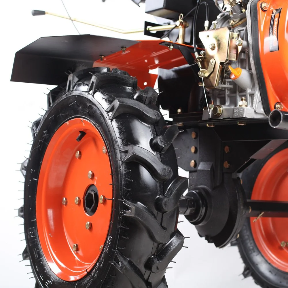 Мощный дизельный мотокультиватор с двигателем 9 л.с. и с рекордной шириной захвата укомплектован и фрезами, и пневмоколесами. Мотокультиватор оборудован валом отбора мощности, дисковым сцеплением в масляной ванне. Шестерёнчатый редуктор способен выдержать самые продолжительные нагрузки. Отдельно можете приобрести и установить роторную косилку, тележку, плуг, окучник, картофелевыкапыватель.