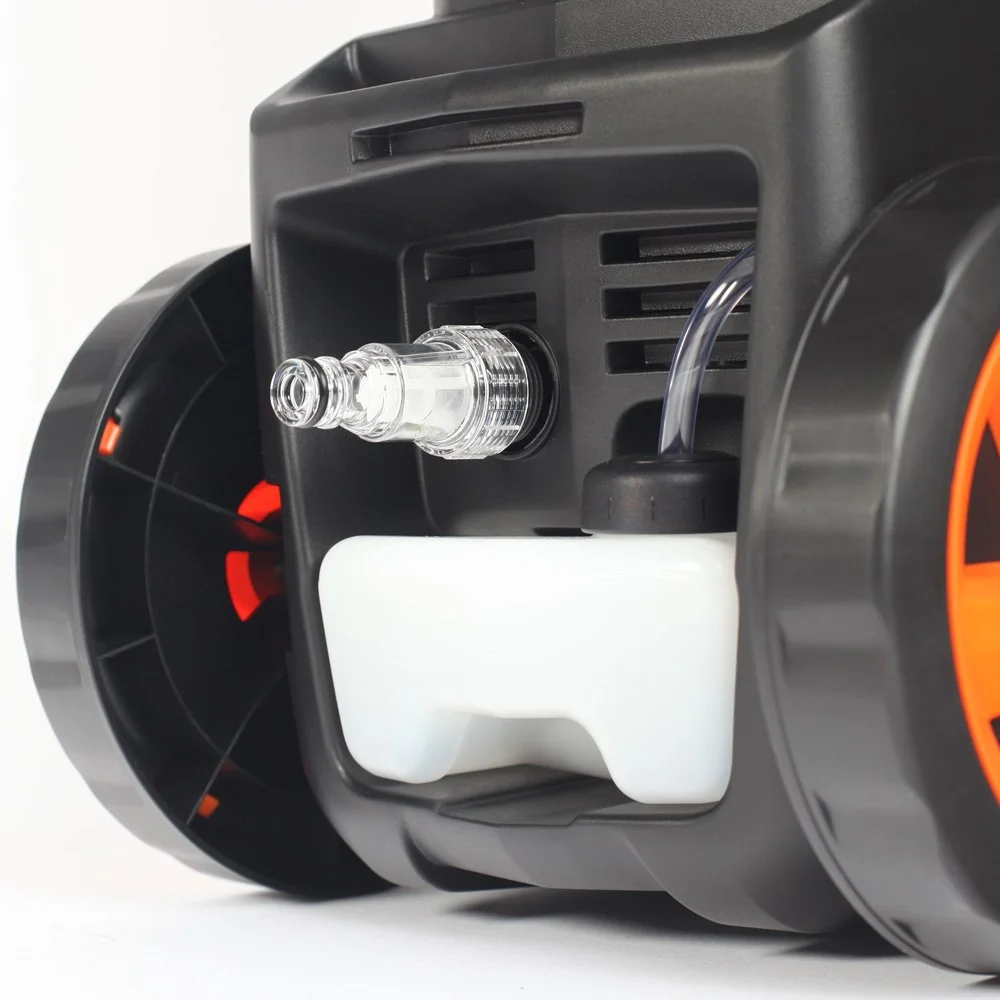 Мощность: 2000 Вт; Максимальное давление: 130 бар; Поток воды: 420 л/час; Напряжение: 220 В. 50Гц; Тип помпы: самовсасывающая Al сплав; Длина кабеля: 2 м; Длина шланга: 5 м; Вес: 8,7 кг; Бокс для крепления аксессуаров: +; Пистолет: +; Удлинитель: +; Регулируемая насадка: +; Мульти копье: -; Бачок для химии: +; Пенокомплект: -; Встроенный фильтр: +; Дополнительный фильтр: +; Комплект подключения: -; Колеса: +; Катушка для шланга: +;