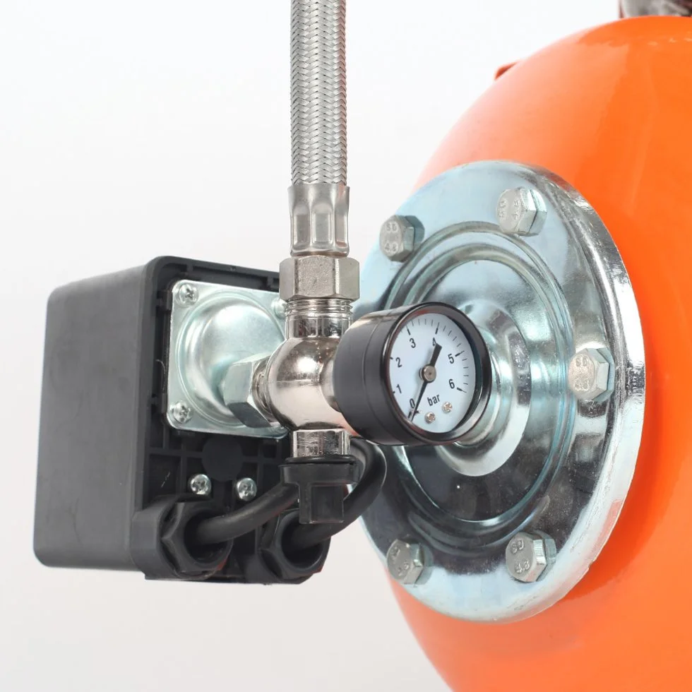 Станция с механическим реле давления работает в автоматическом режиме. Благодаря своему принципу функционирования, решаются проблемы, возникающие в случаях, когда поток воды не обеспечивает требуемое рабочее давление или необходимо снабжение водой из накопительной емкости, колодца или скважины.