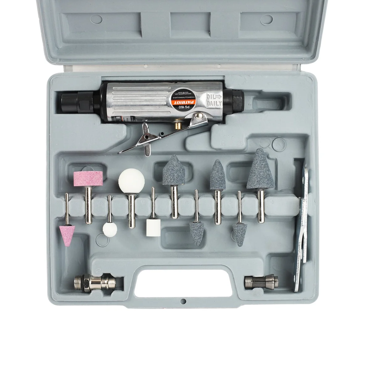 Прямая пневмошлифмашина Patriot PG 160 идеально подходит для шлифования тонких сварных швов, обработки контуров, полирования поверхностей. Поставляется с набором шлифкамней и с кейсом, удобным для хранения и транспортировки. Модель имеет длинную широкую клавишу пуска - для удобного пользования инструментом. Может быть использована для работы в труднодоступных местах.