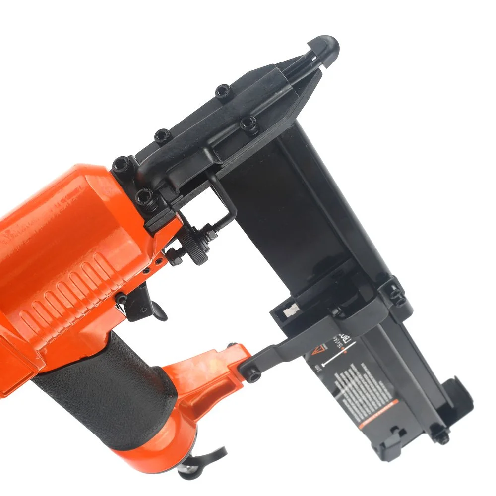 Благодаря комплектации «узкими» скобами, отлично подойдет для работ по отделке декоративных деталей, где необходимо скрытое и надёжное крепление.