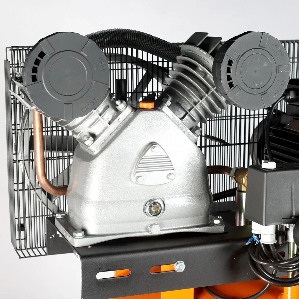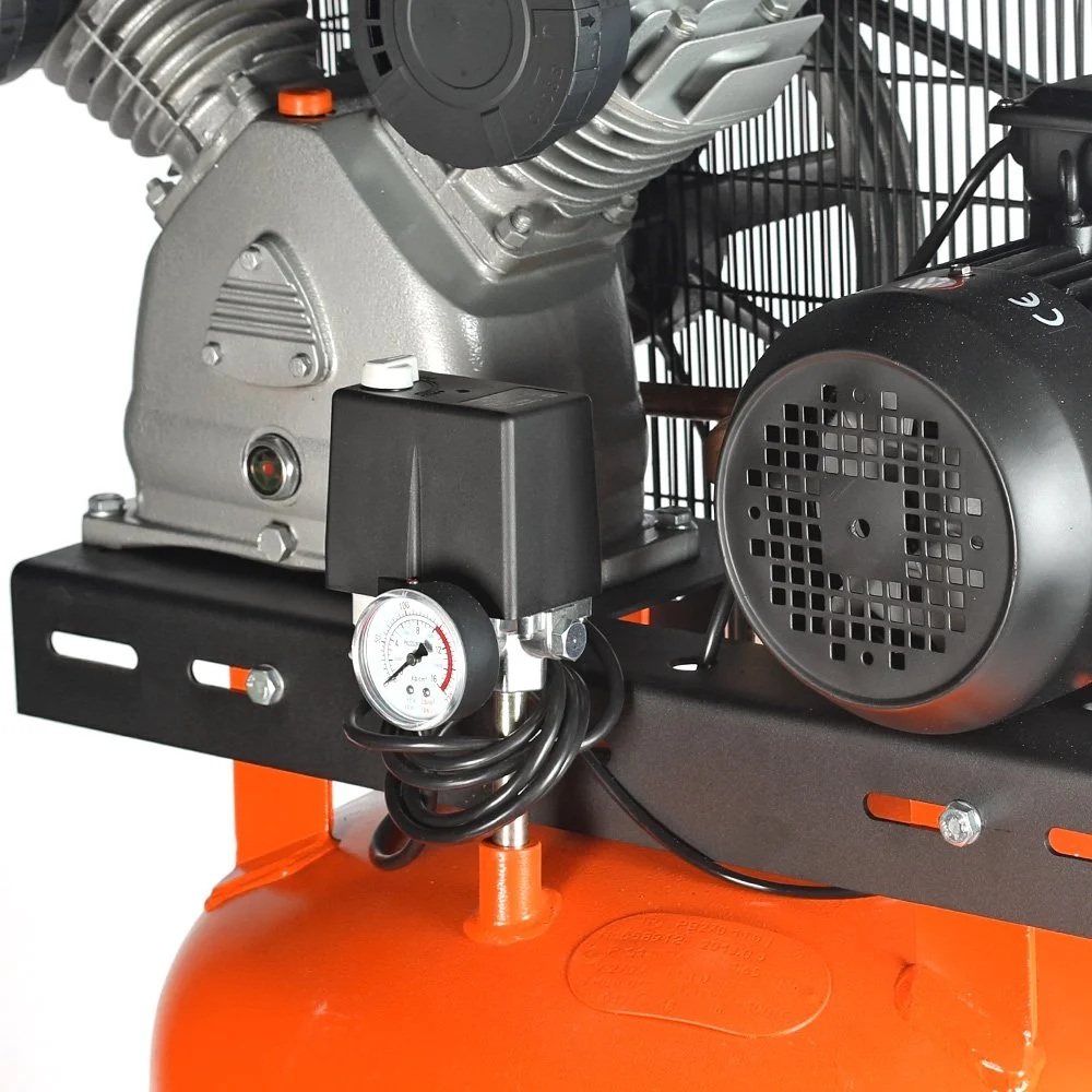 Двухцилиндровый компрессор с ременной передачей и увеличенной производительностью. Применяется для сервисных, ремонтных работ в гараже, на шиномонтаже и автосервисе.