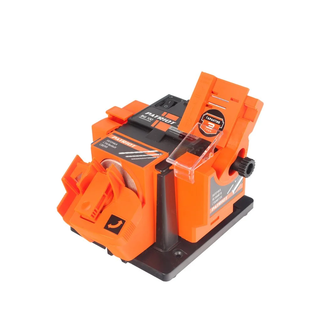 Многофункциональный станок Patriot BG 100 с различными насадками предназначен для заточки сверл по металлу, зубил, ножей, ножниц или узких лезвий.