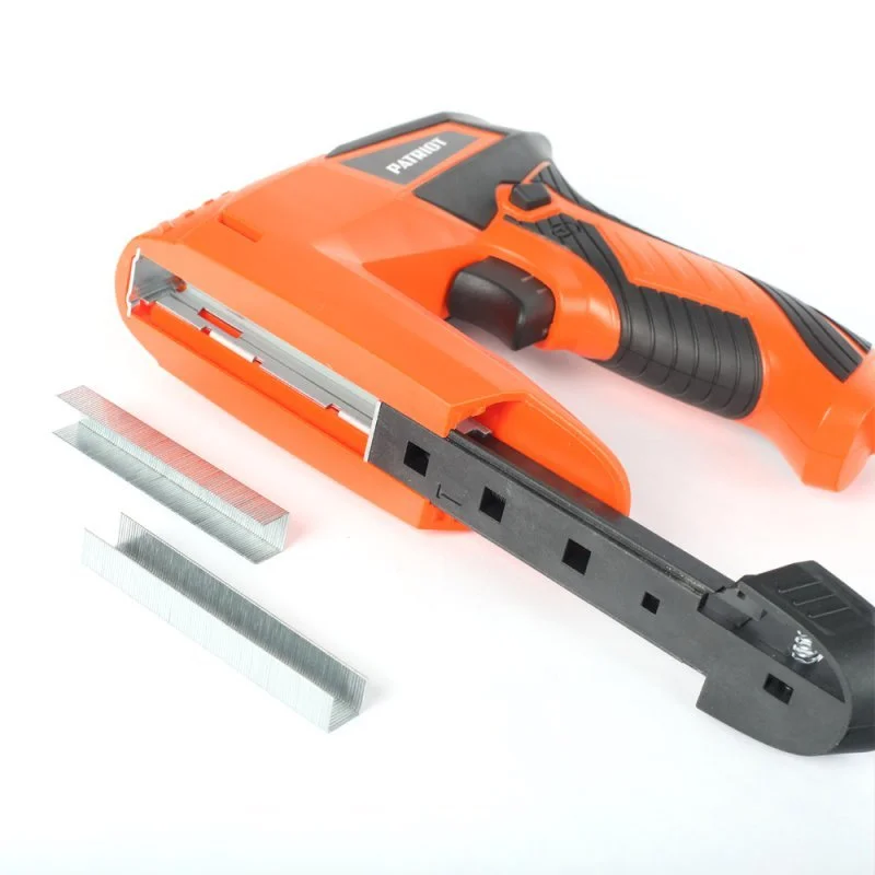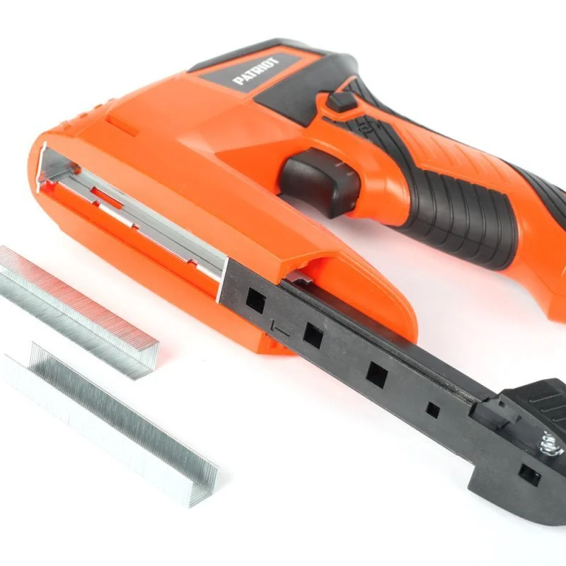 Электрический степлер EN 141 подходит для закрепления ткани, кожи, плёнки. Благодаря возможности использовать в качестве крепежа гвозди может работать с панелями из пластика и дерева. Простой и универсальный инструмент с эргономичным корпусом. Степлер EN 141 подходит для работы со скобами тип 53: длиной 8-14 мм/шириной 10,6 мм/ толщиной 10 мм и Т-образными гвоздями длиной 15 мм/шириной 2 мм/толщиной 1,2 мм. В комплект входят 100 гвоздей и 400 скоб, что позволяет сразу приступить к работе.