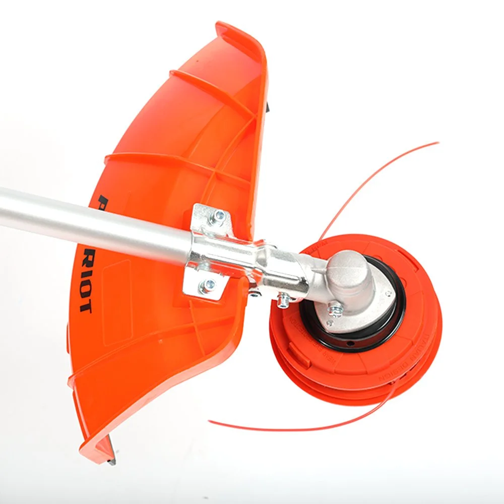 На кожухе имеется ограничительный нож для подрезки лески до необходимой длины;