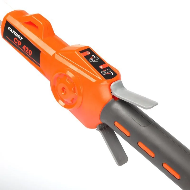 Аккумуляторный цепной высоторез. Поставляется без аккумулятора и зарядного устройства. Предназначен для обрезки крон деревьев на приусадебных участках с помощью пильной цепи . Используется с аккумуляторами "PATRIOT" серии BL , напряжением 40 Вольт. Легкий, идеально сбалансирован. Телескопическая штанга из профилированного алюминия с максимальной длиной -2 метра. Обрезиненная ручка управления. Автоматическая система смазки . Безинструментальное натяжение цепи.