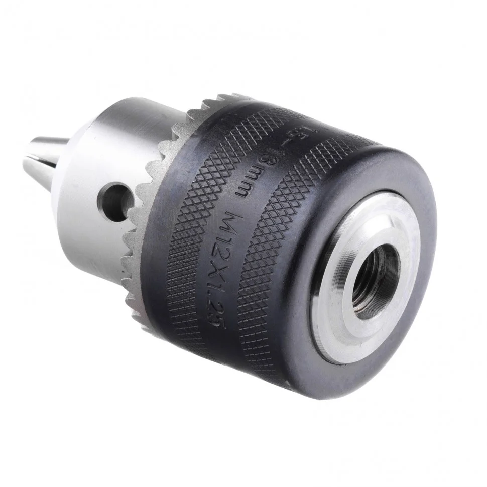 Ключевой патрон тип соединения М12х1,25, под оснастку 1,5-13 мм, с адаптером SDS PLUS, можно использовать как с дрелями, так и с перфораторами. Позволяет надежно зафиксировать сверло, работать без риска его прокручивания и выпадения. Пригодится в качестве основного или запасного патрона на строительной площадке.ПреимуществаСтойкость к нагрузкам — кулачки патрона закалены до твердости 54-56 HRC.Надежная фиксация оснастки — патрон оснащен ключевым механизмом.Рельефная поверхность — патрон не скользит в руках, за счет чего с ним удобно работать.Отчетливая маркировка — основные характеристики патрона нанесены на его корпус.Ключ в комплекте — его не придется покупать отдельно.