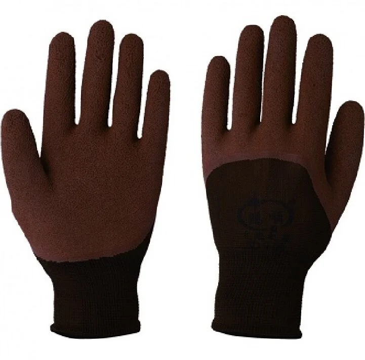 Перчатки нейлоновые с вспененным латексным покрытием, коричневые (глубокий облив) №84 72526