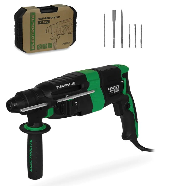 Перфоратор ELECTROLITE П 1200 (1200Вт, 4000 уд/мин, 900об/мин, скорость 1, патрон SDS-Plus)