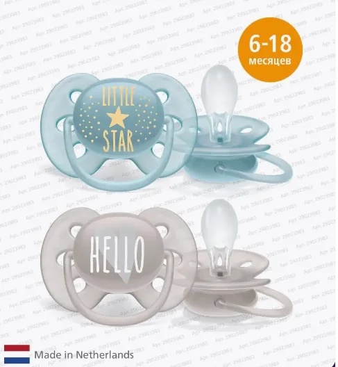 Позаботьтесь о чувствительной коже малыша, выбрав пустышку Philips Avent ultra soft. Наш невероятно мягкий и гибкий нагубник повторяет естественные контуры лица, оставляя меньше следов и раздражения на коже малыша. Гибкий и мягкий нагубник оставляет меньше следов и раздражения на коже малыша. Чувствительной коже требуется особый уход. Благодаря технологии нагубника пустышка повторяет естественные контуры лица, обеспечивая комфорт. Пустышка оставляет меньше следов и раздражения на коже малыша. Закругленный нагубник для невероятно комфортного ежедневного использования. Закругленный нагубник минимизирует давление для комфорта малыша и бережного воздействия на кожу щек. Любят дети по всему миру. Когда мы узнали у мам, как малыши реагируют на наши бархатистые силиконовые соски, в среднем 98 % опрошенных сказали, что ребенок легко принимает пустышки Philips Avent ultra soft и ultra air.Приятная на ощупь бархатистая соска для успокоения. Эта пустышка с бархатистой силиконовой соской успокаивает малыша и обеспечивает ощущение комфорта. Разработаны для естественного развития полости рта. Наша мягкая силиконовая соска симметричной формы учитывает естественное развитие неба, зубов и десен младенца. Один футляр для стерилизации и хранения. Ультрамягкий дорожный футляр выполняет функцию стерилизатора — вам просто нужно добавить воды и положить его в микроволновую печь. Пустышка вновь будет чистой перед следующим использованием. Противопоказания к применению: Индивидуальная непереносимость компонентов.