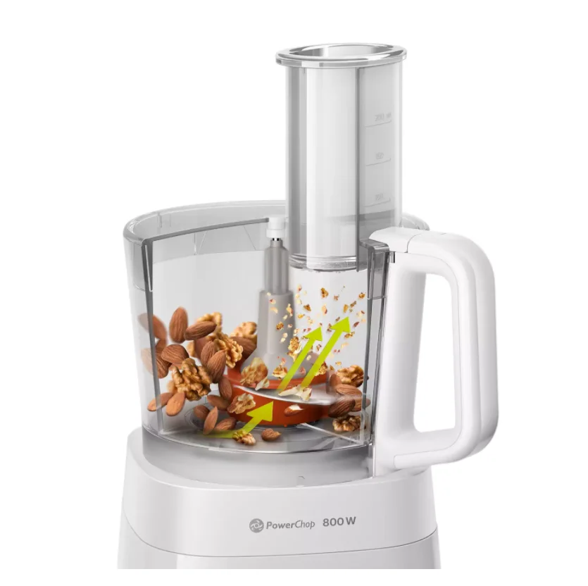 Наш мощный мотор с легкостью справится с различными ингредиентами, например хлебным тестом, жесткими овощами, сыром и шоколадом. Он также обеспечит простую нарезку и измельчение.