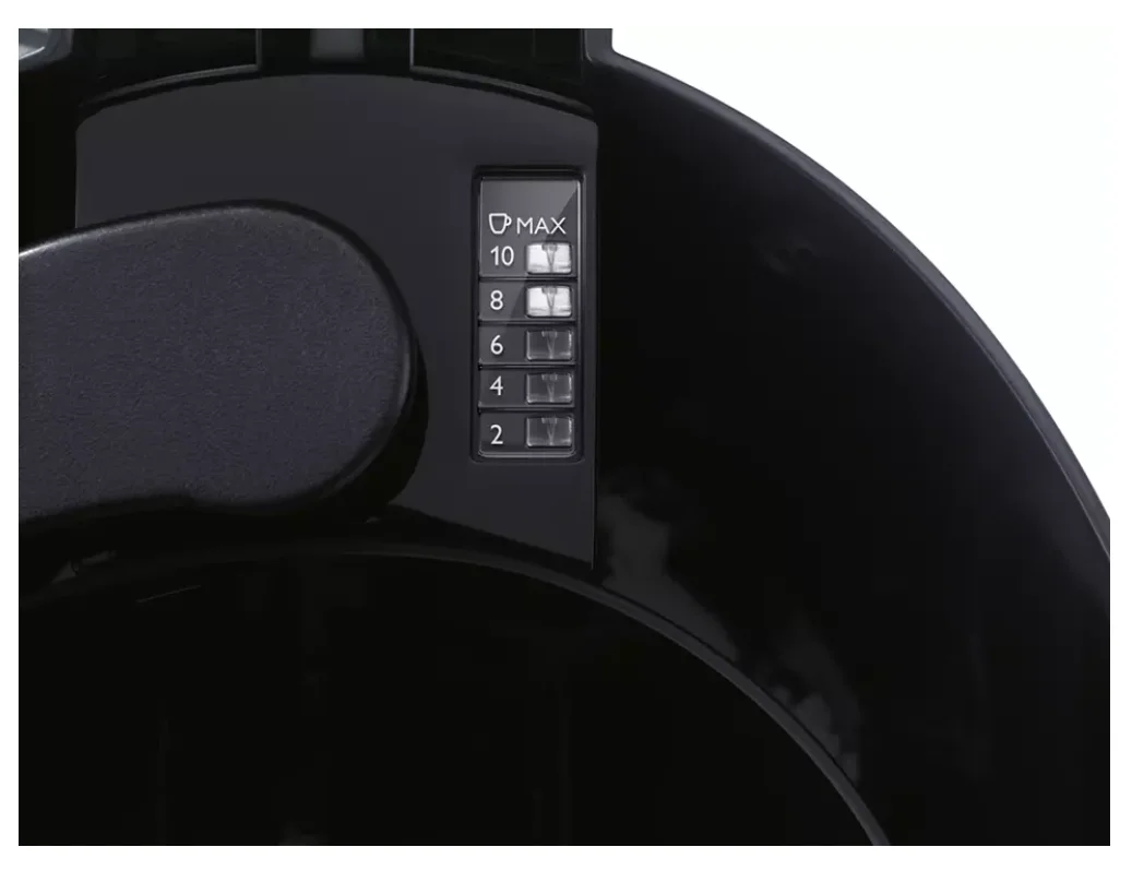 Емкость кувшина кофеварки 1,2 л рассчитана на приготовление от 2 до 10 (больших) или даже 15 маленьких чашек кофе. В то же время, компактный дизайн позволяет сэкономить место на кухне.