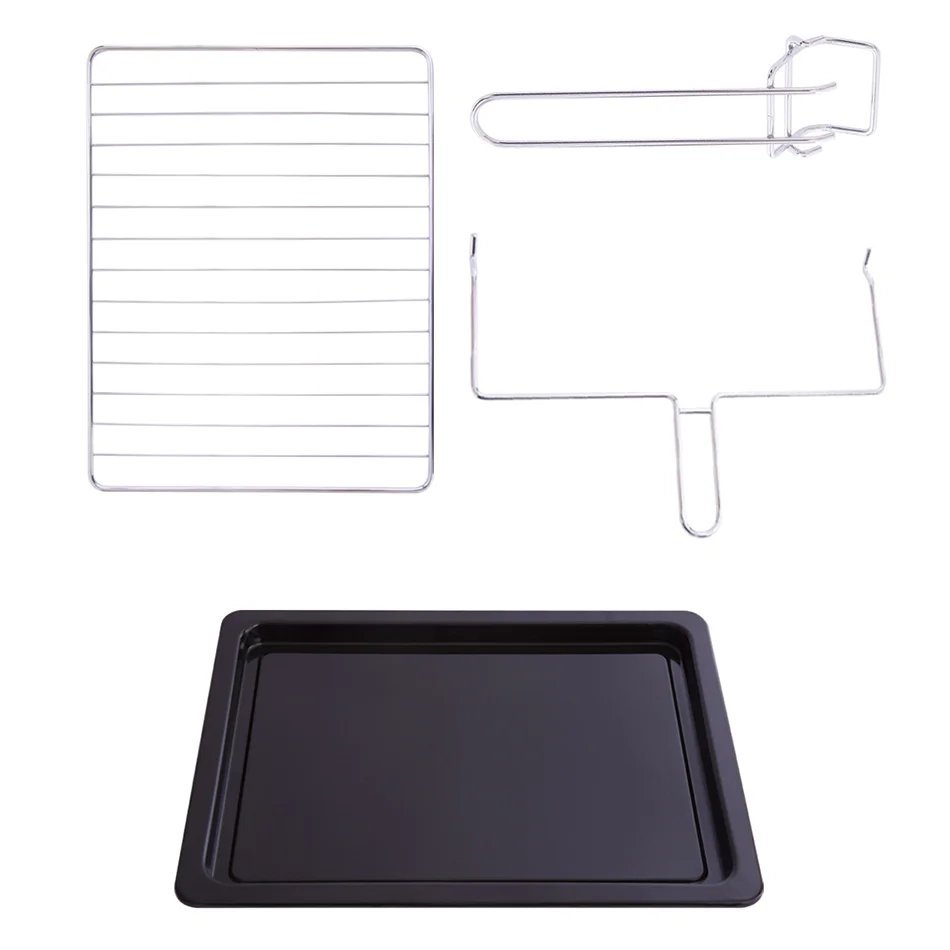 - Комплектация: электропечь, металлическая решетка, плоский противень, вертел, держатель для вертела, ухват, гарантийный талон, инструкция на русском языке