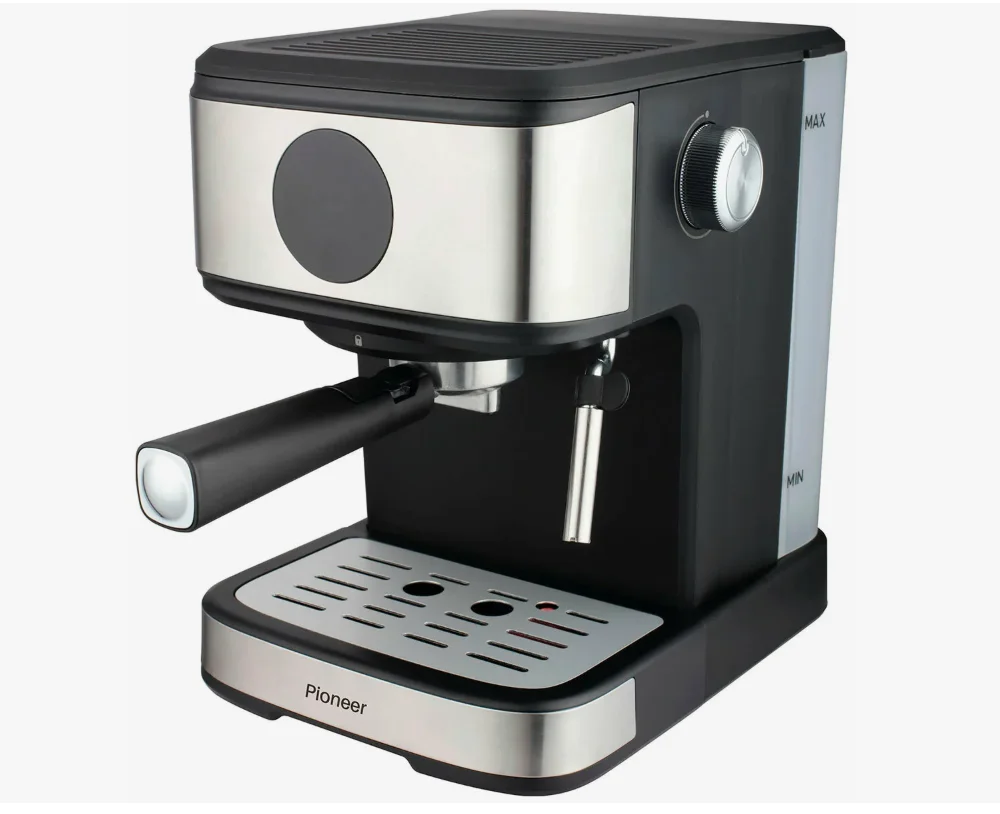 Кофеварка рожкового типа Pioneer CM121P сочетает функции рожковой и капсульной кофеварки, позволяет использовать как молотый кофе, так и кофе в чалдах.