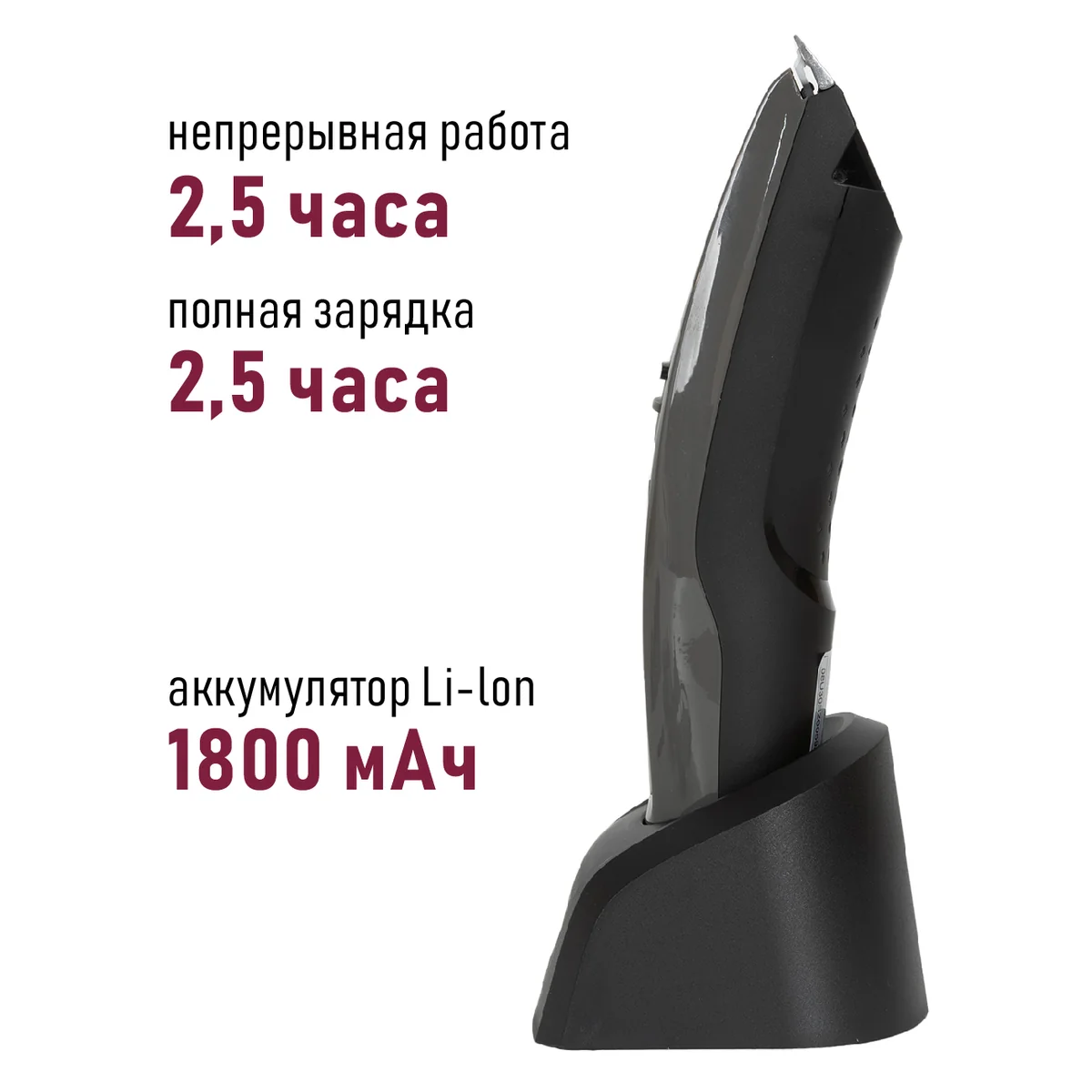 - Тип питания: литиевая батарея 1800 мАч