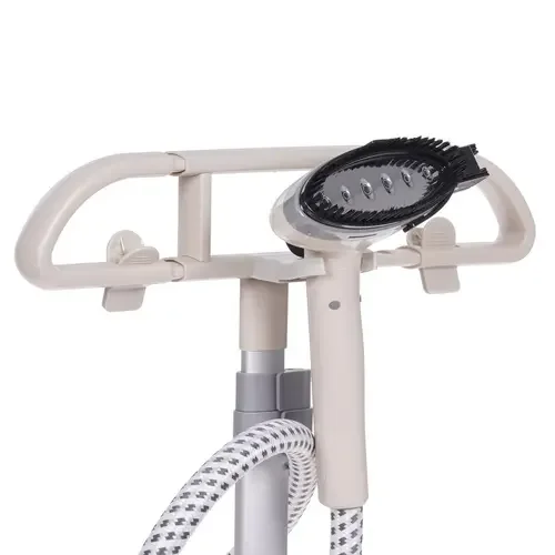 - Комплектация: отпариватель, доска для глажения, гибкий шланг в защитной оболочке, насадка для отпаривания, плечики для одежды с прищепками для брюк и юбок, перчатка, гарантийный талон, инструкция на русском языке